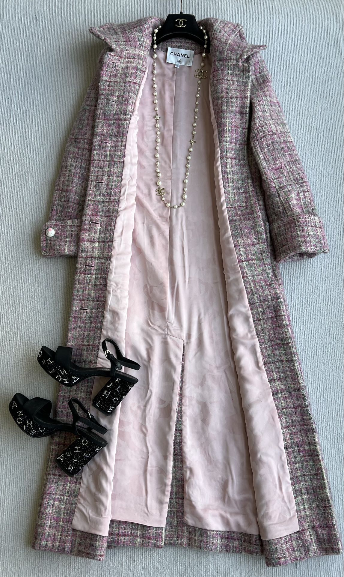 Chanel 25 Long Coat Pink Mohair Wool 318385