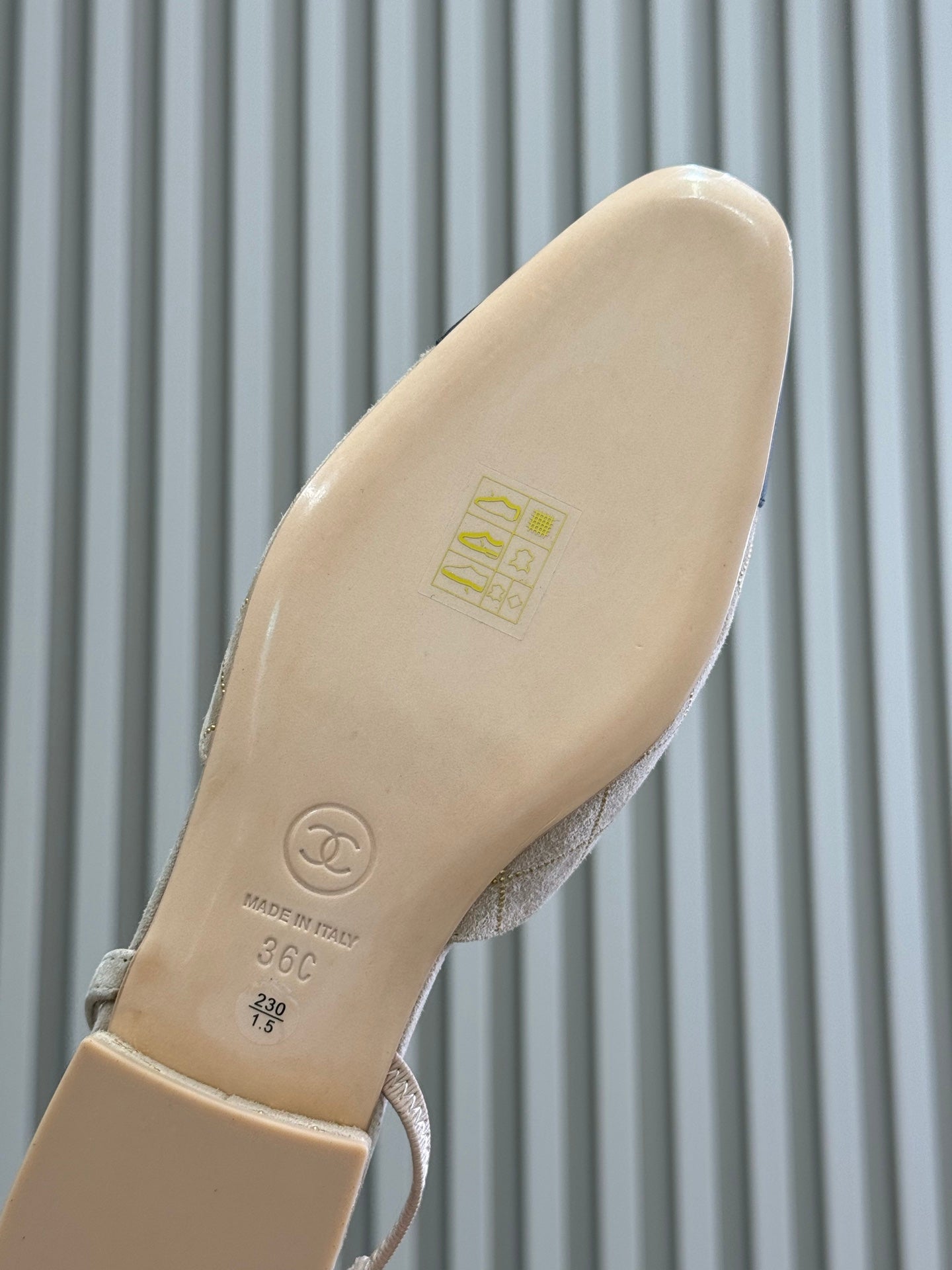 Chanel 25 Plaid Slingback Beige Black Suede Sheepskin 468363
