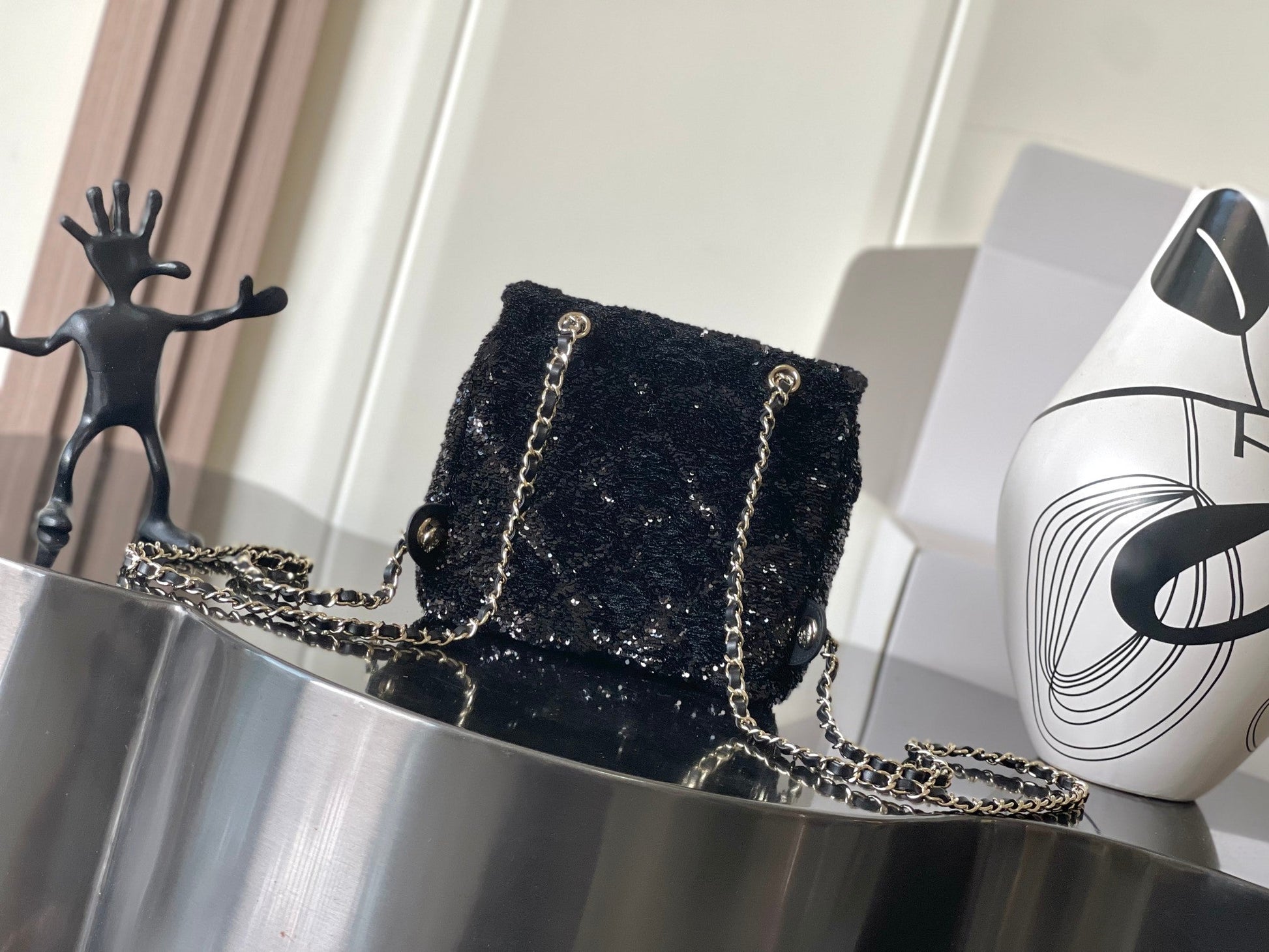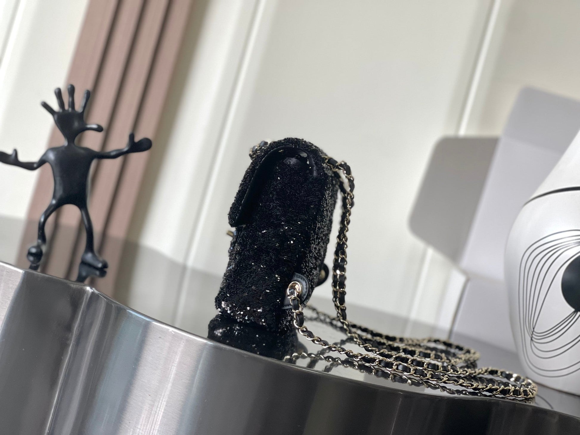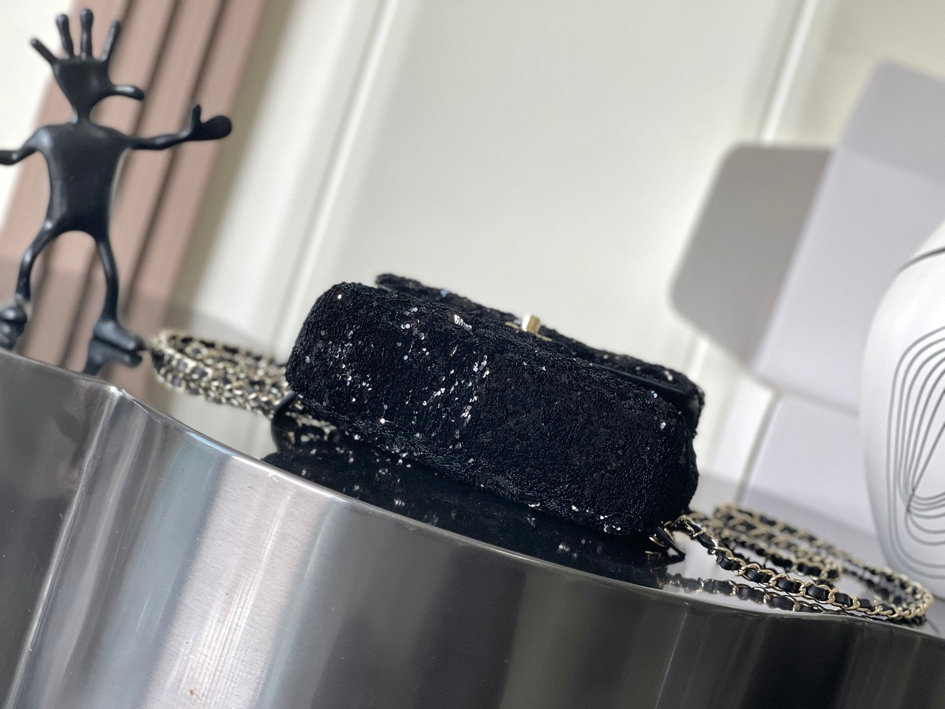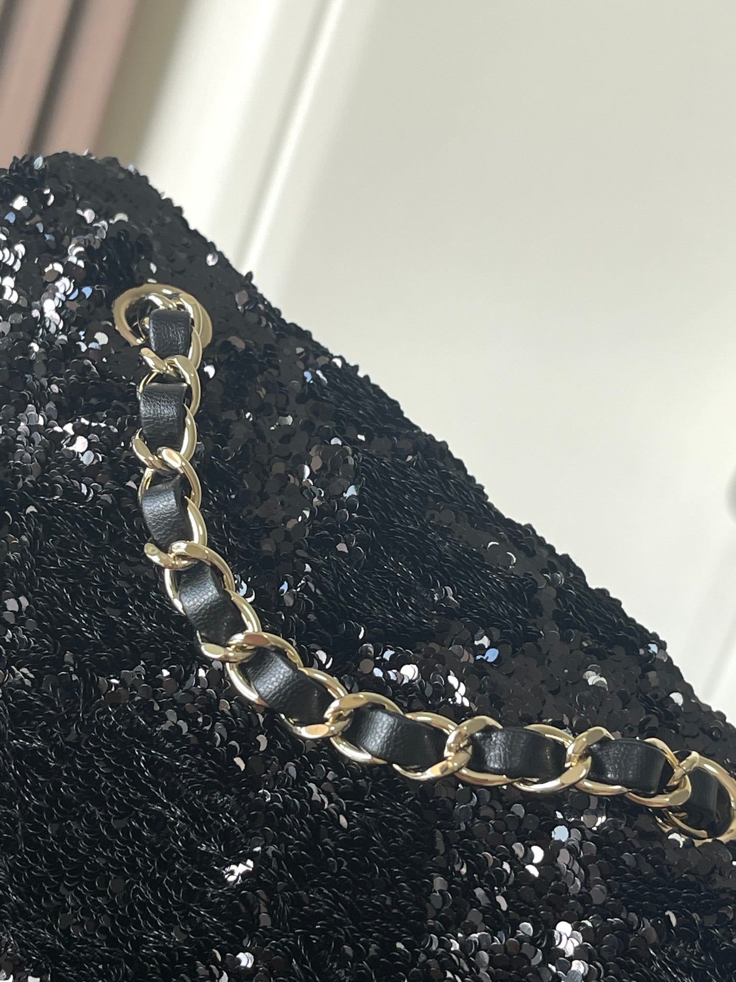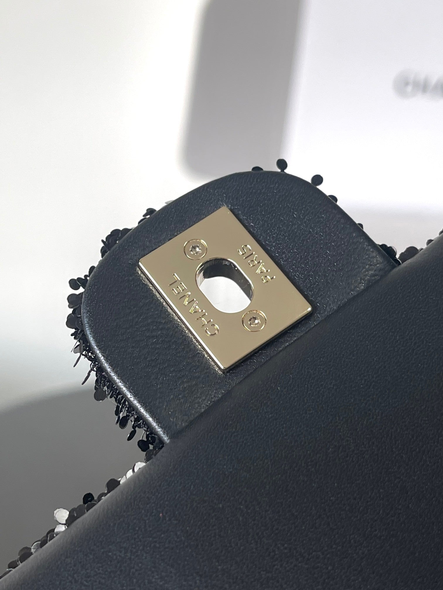 Chanel 25 Sequin Embroidered 21cm Bag Black Leather Sequins 286173
