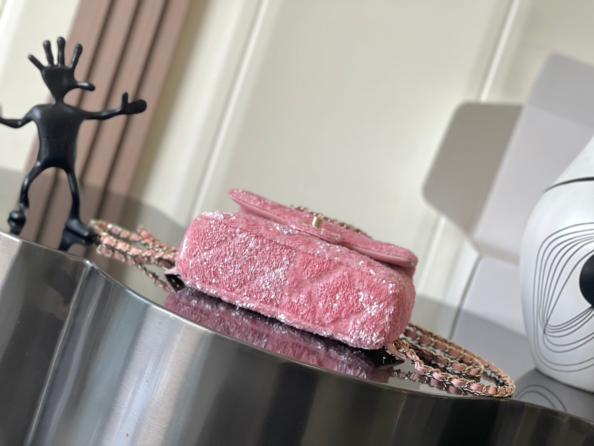 Chanel 25 Sequin Embroidered 21cm Bag Pink Leather Sequins 286171