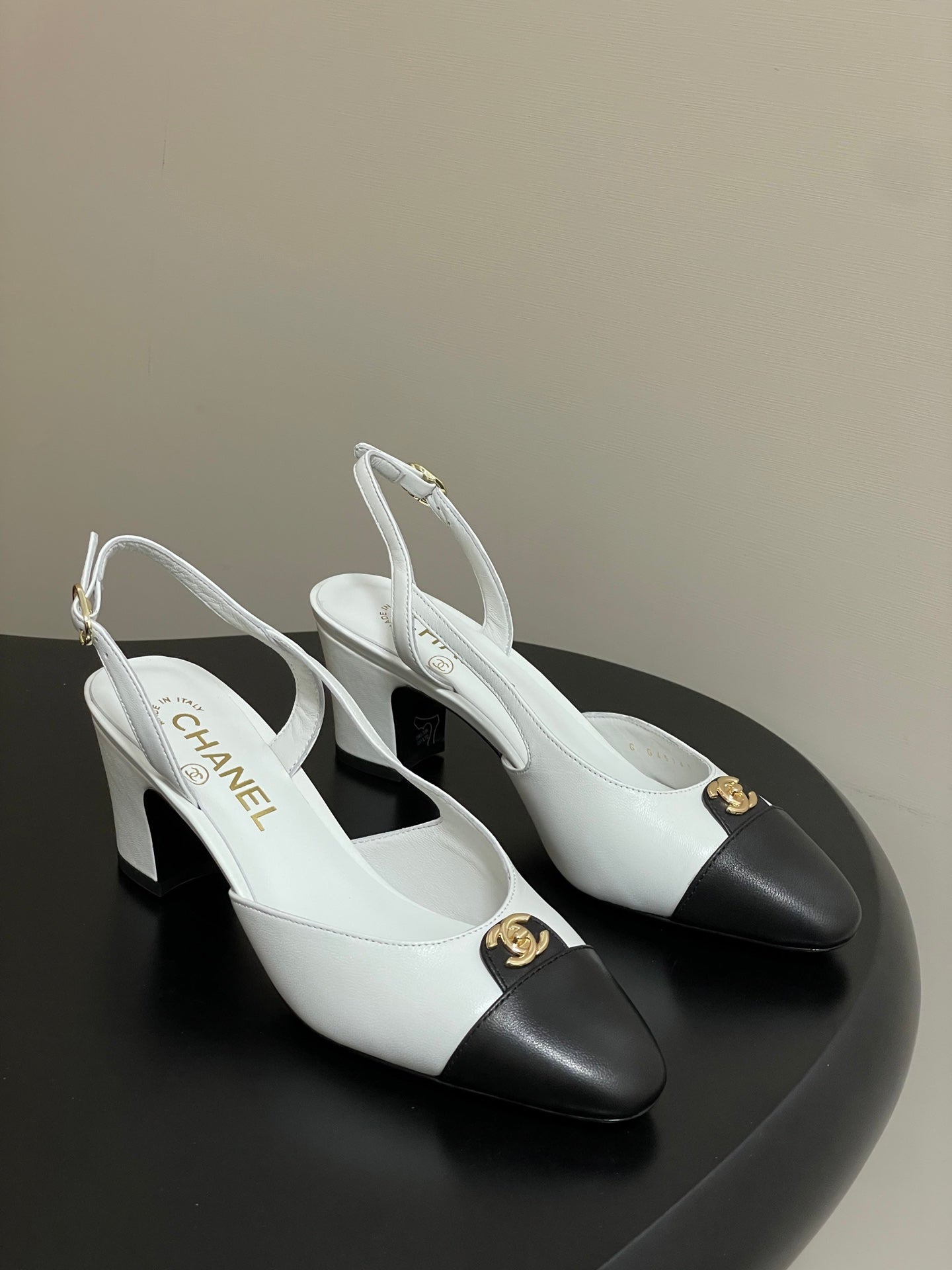 Chanel 25 Slingback 50mm White Black Lambskin 473217