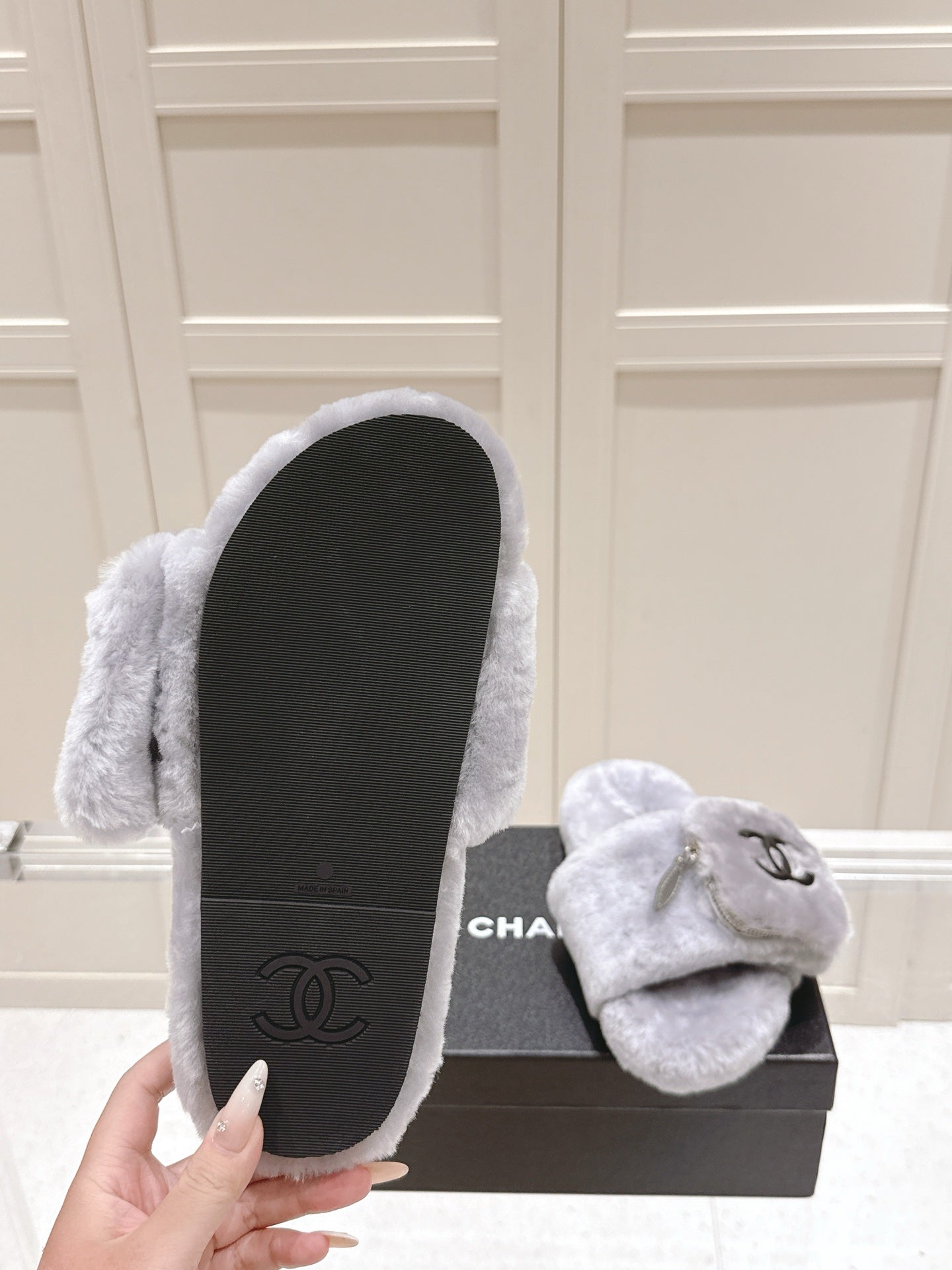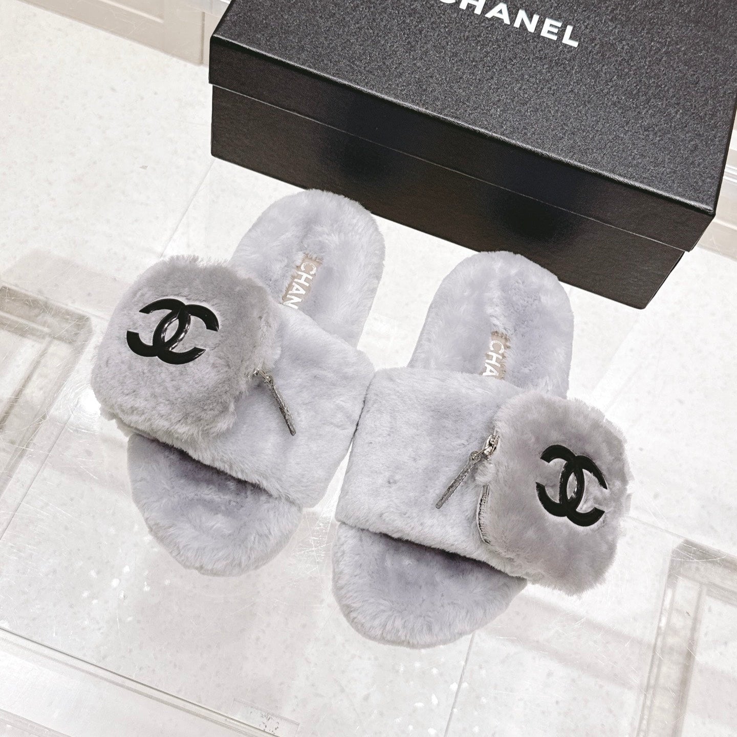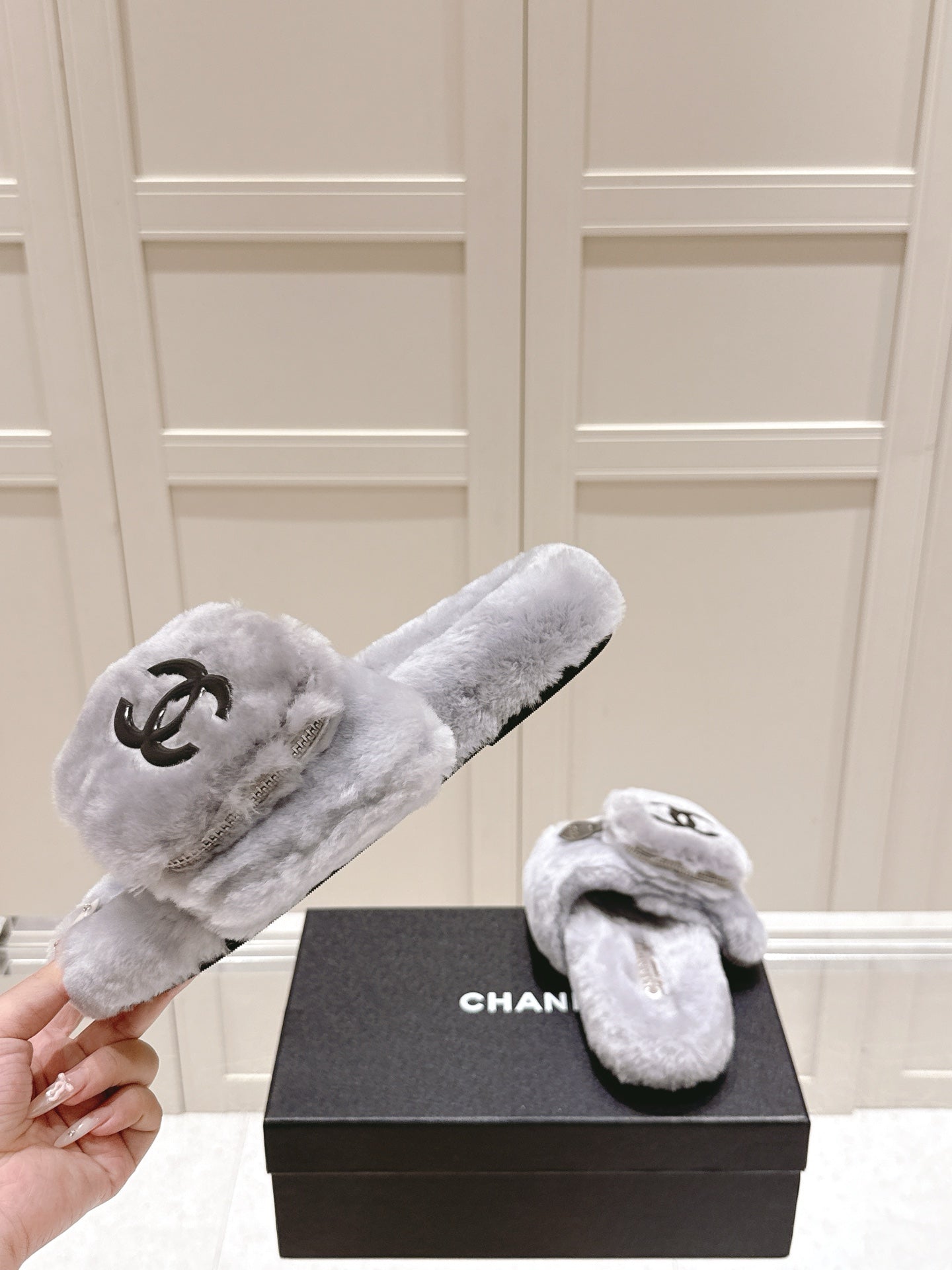 Chanel 25A Early Autumn Slippers Gray Wool 393081