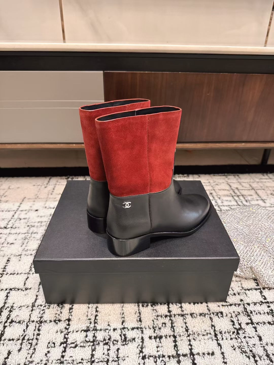 Chanel 25A Winter New Low Boots Black Red Cowhide 393514