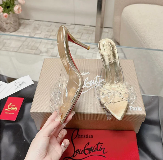 Cl Aqua Strass 80mm Mules Pvc Iridescent Nappa Leather And Strass Gold