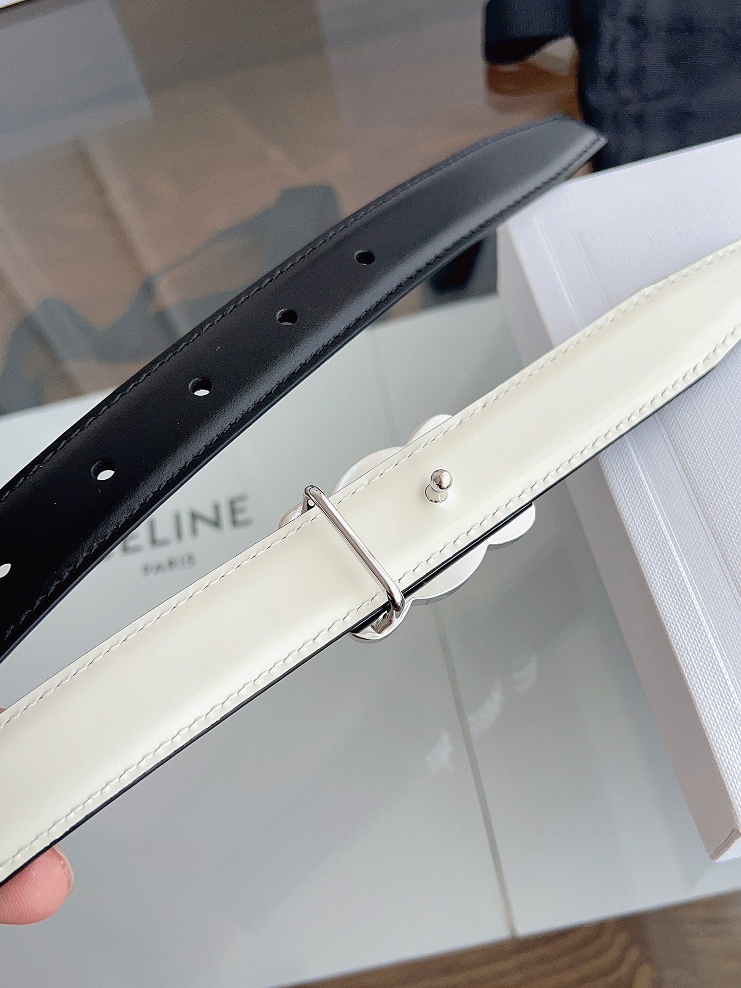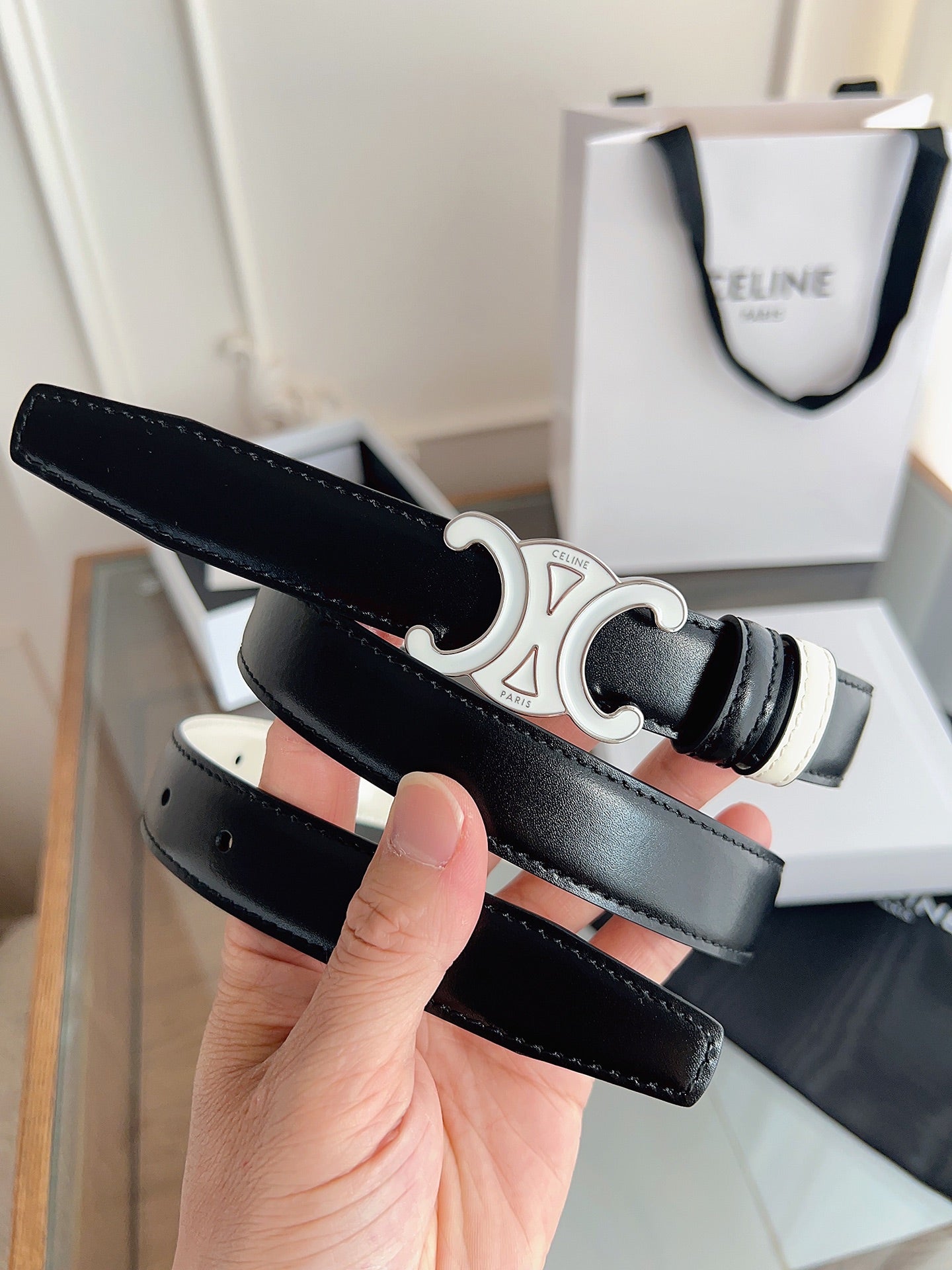 CL White 25mm Triomphe Enamel Black White Cowhide 615279