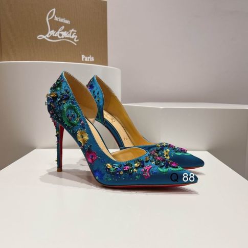 CL Brodiriza Embellished D'orsay Pumps 100mm Satin Blue