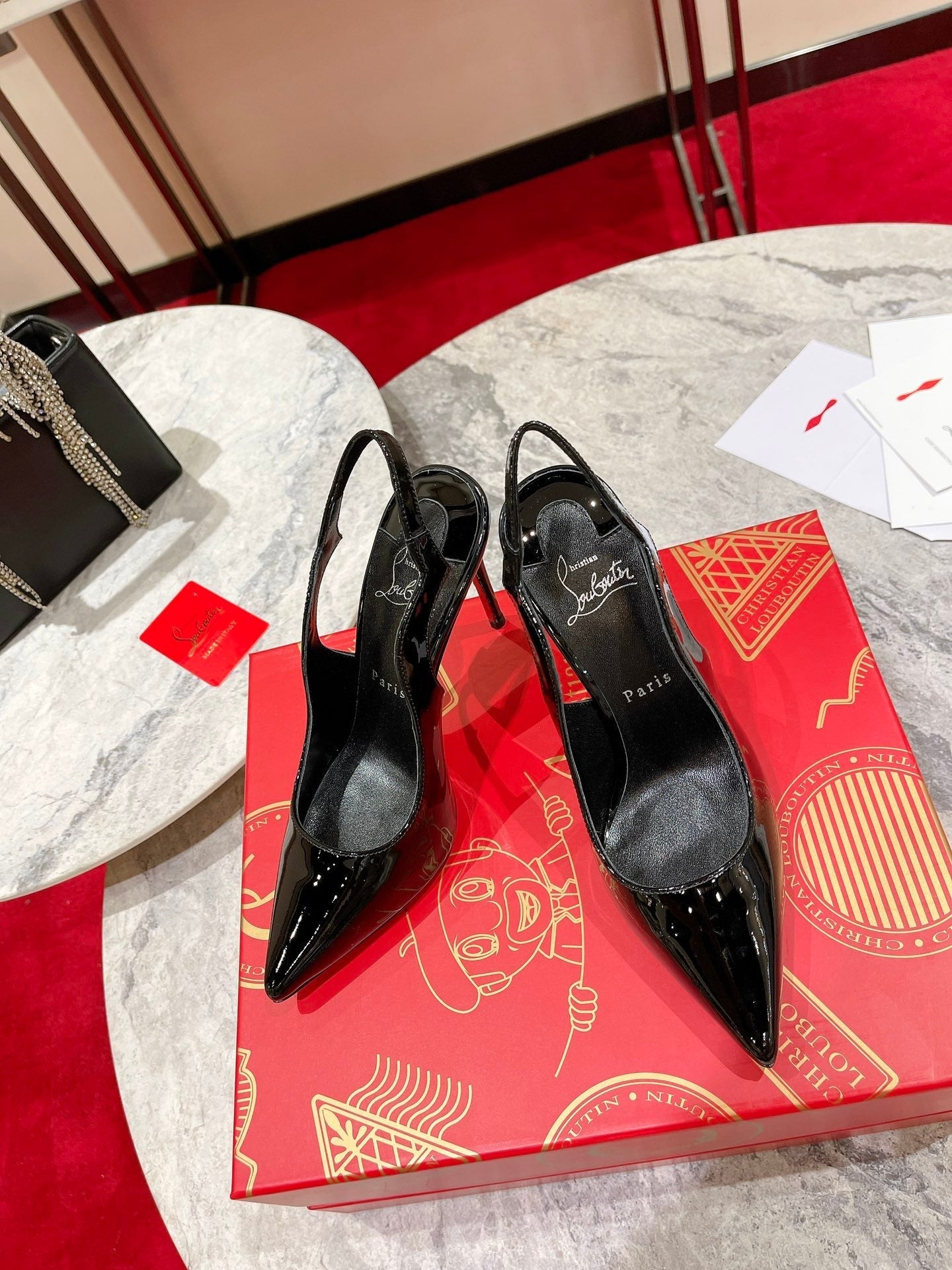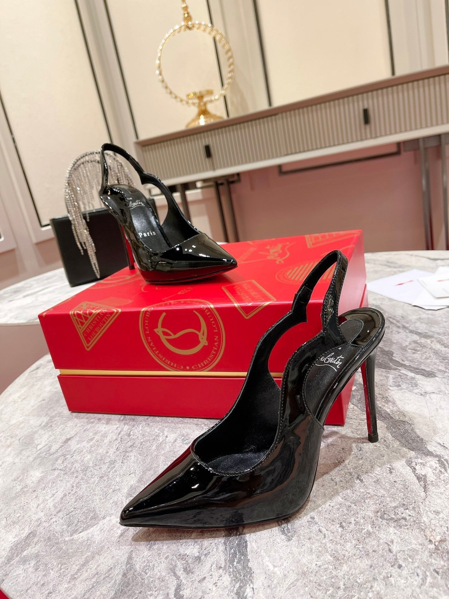 CL Hot Chick Sling 100 Mm Sling Back Pumps Patent Leather Black