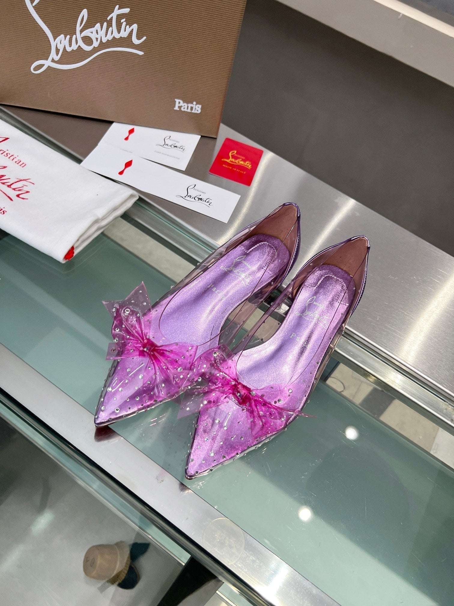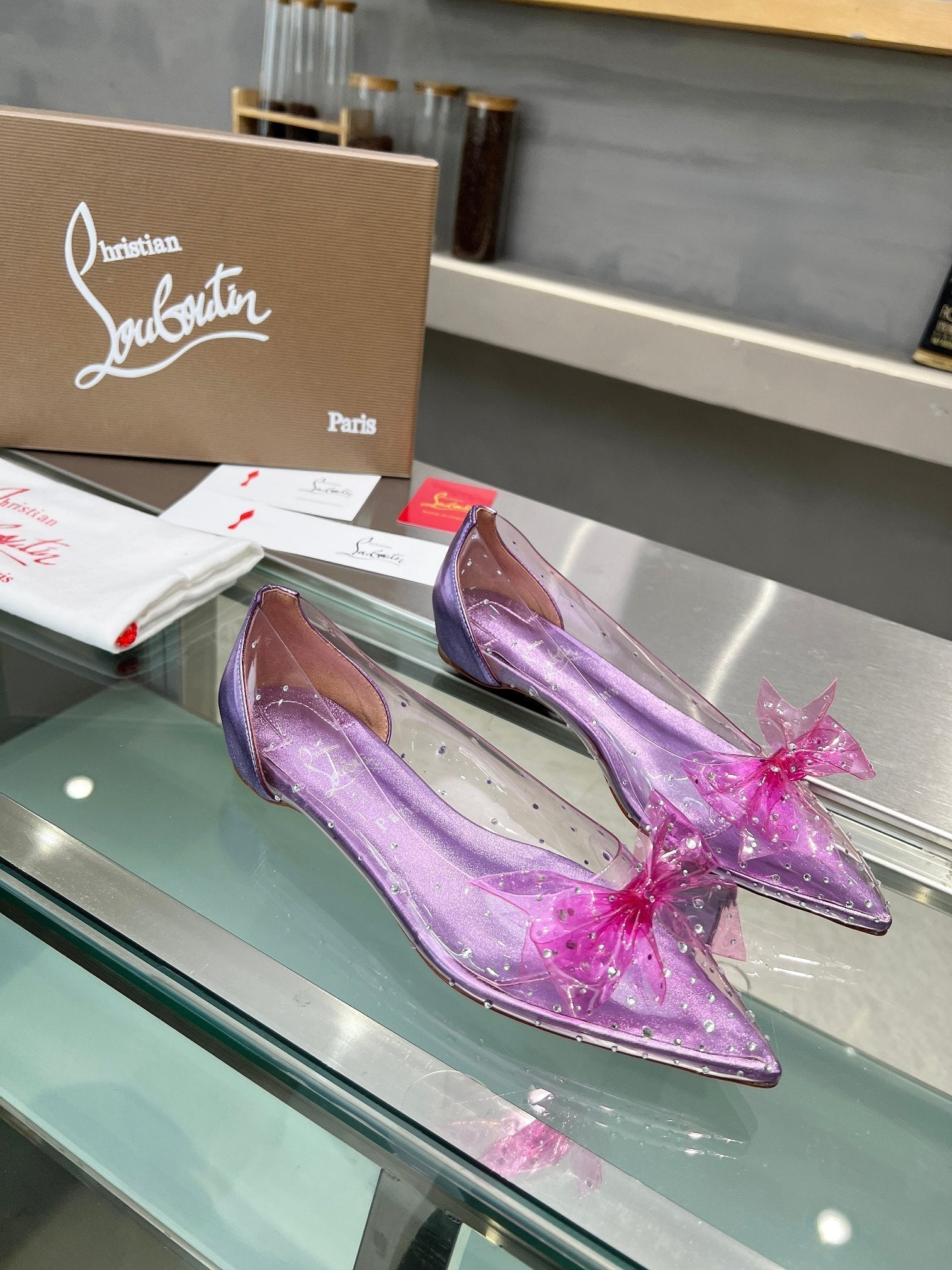 CL Jelly Strass Flats Pvc Iridescent Nappa Leather And Strass Parme