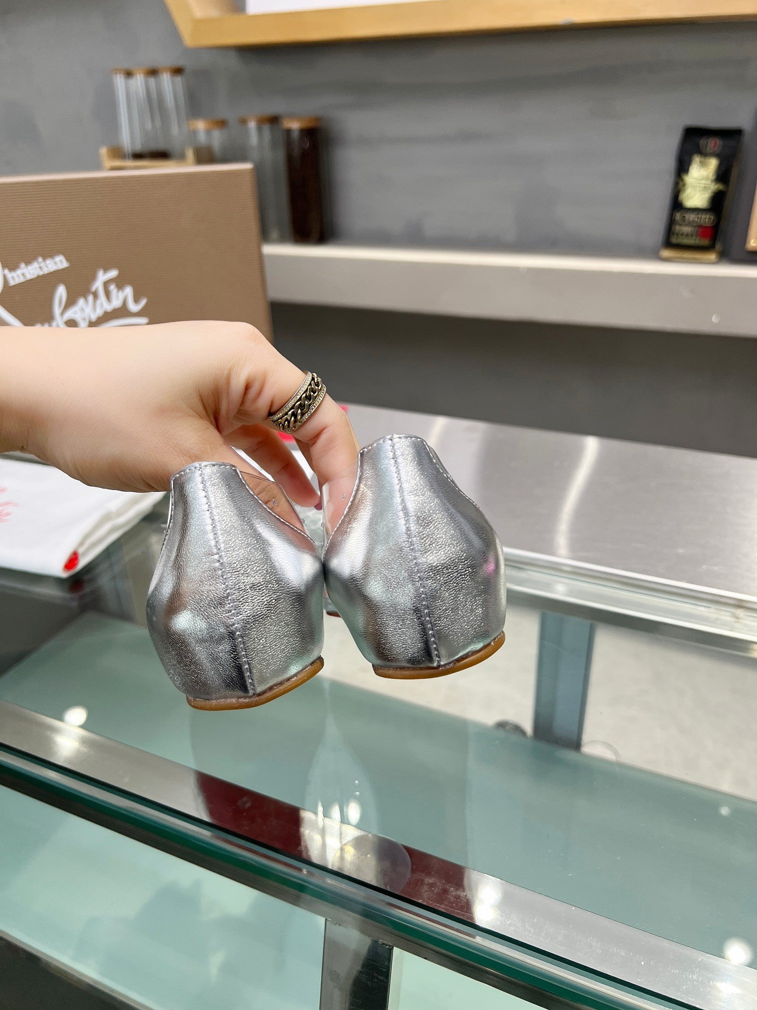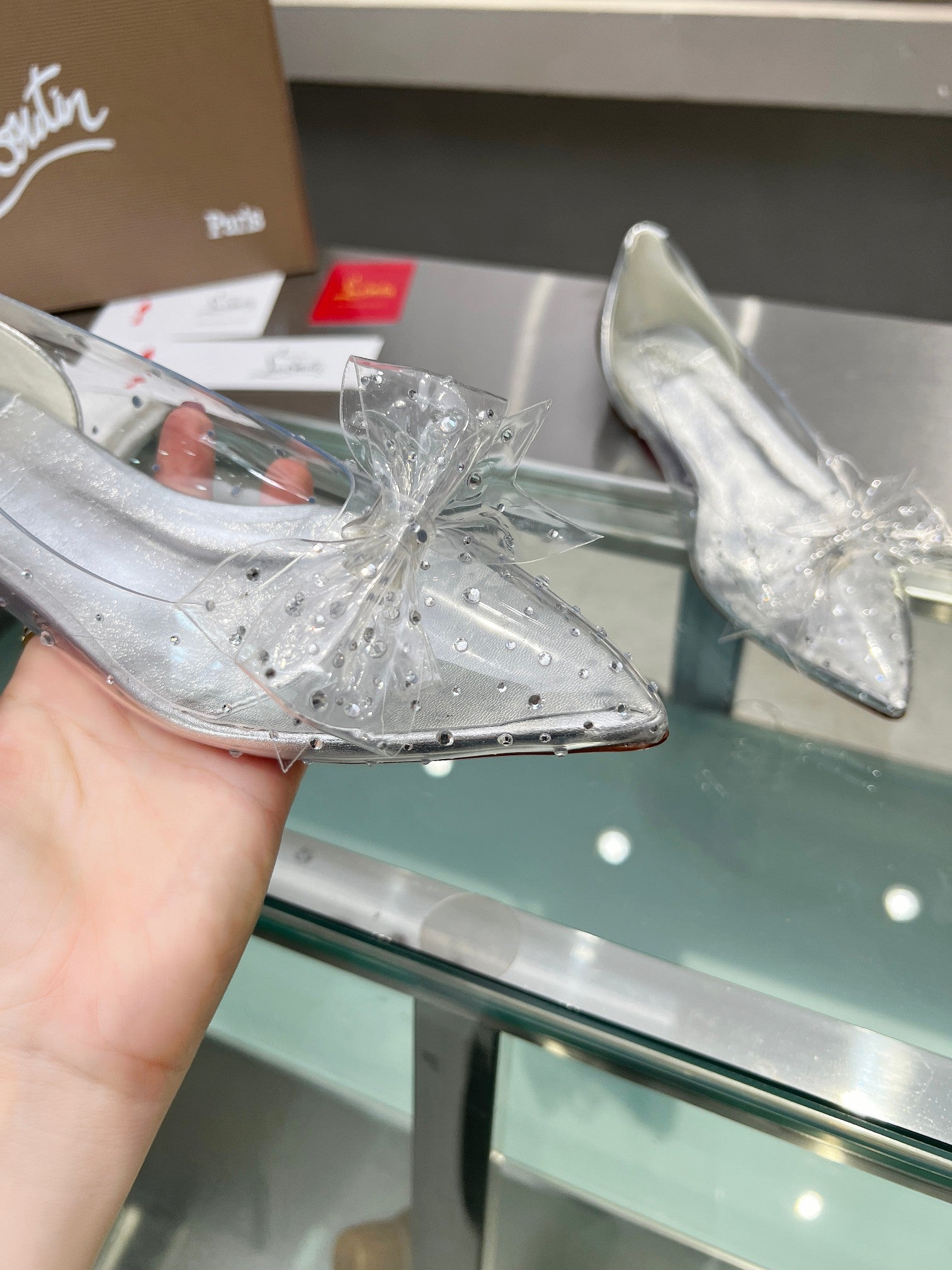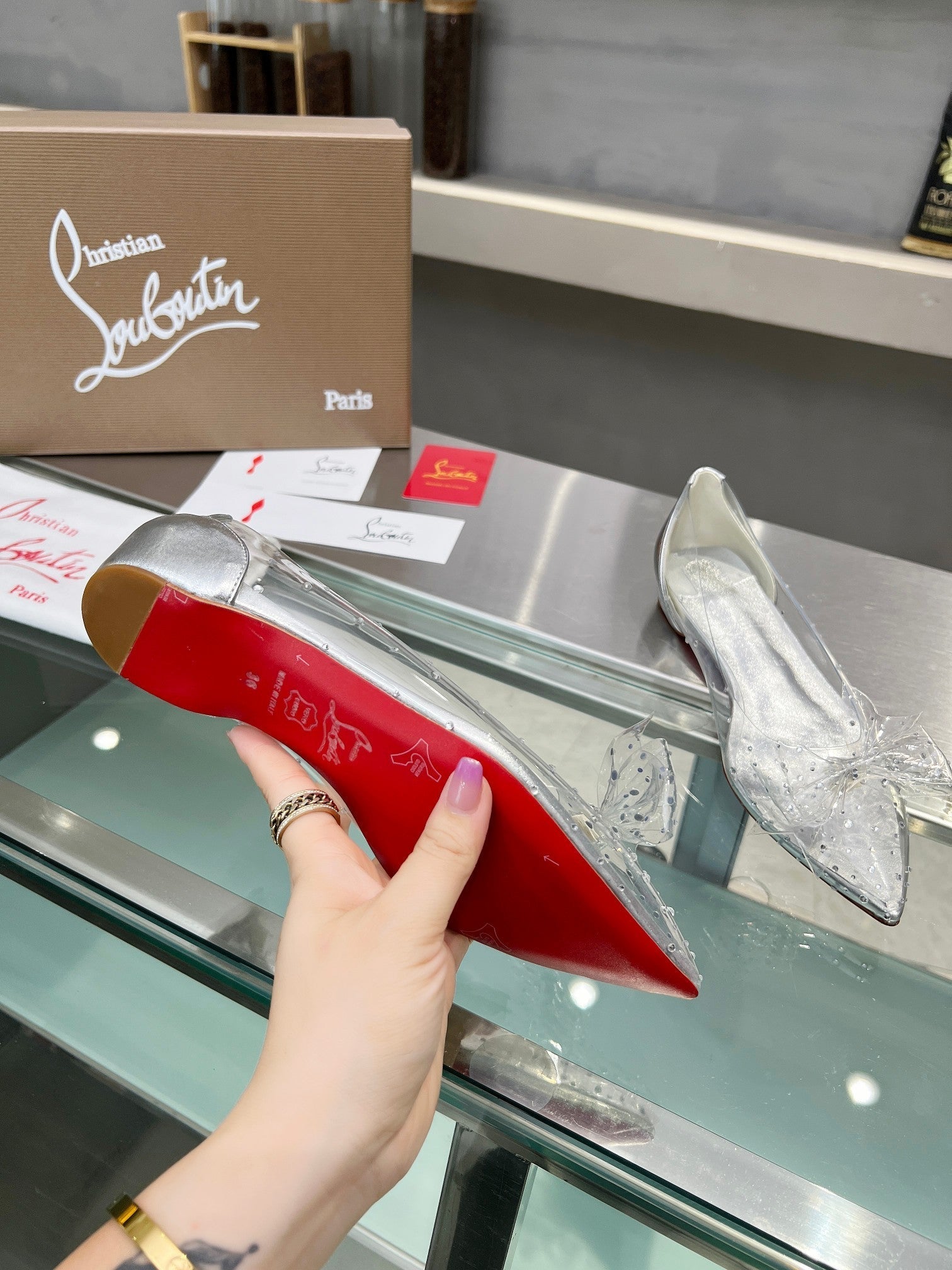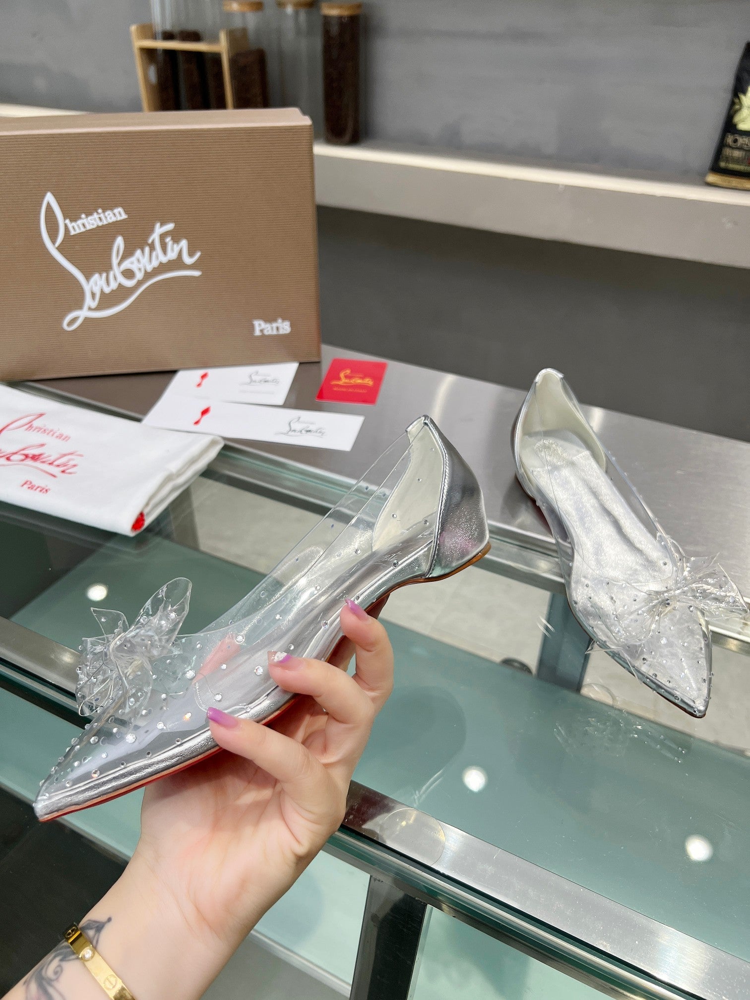 CL Jelly Strass Flats Pvc Iridescent Nappa Leather And Strass Silver