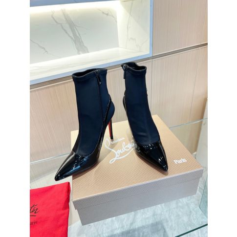CL Jessie Booty Joli 100 mm Patent Satin Crystal Embellished Black