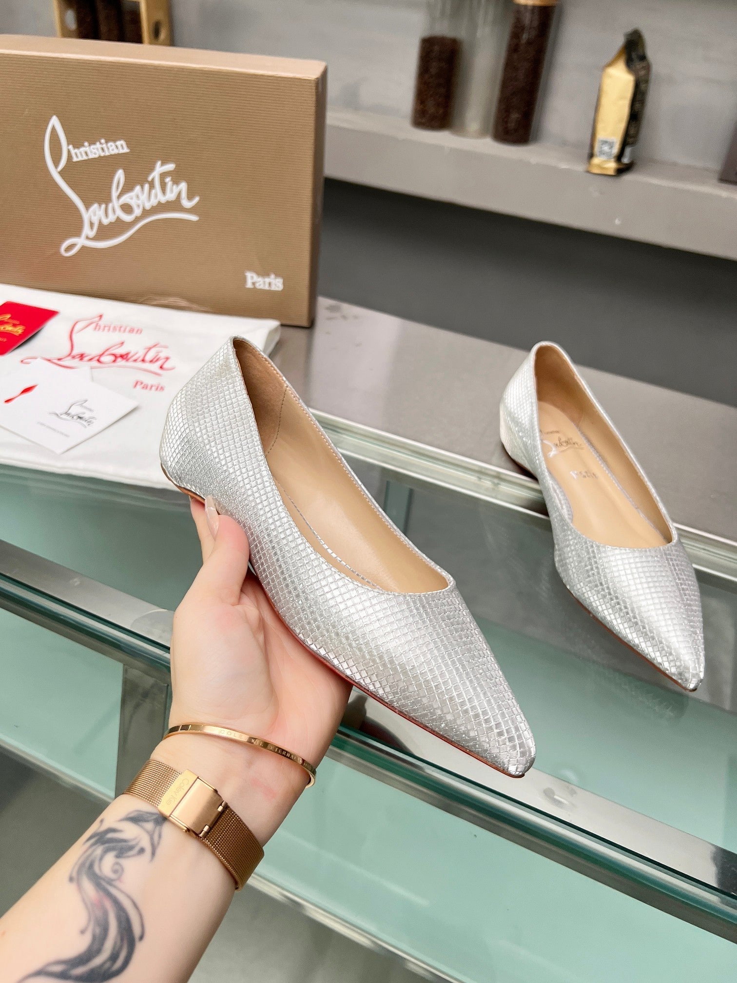 CL Kate Ballerina Flats Sequin Fabric Silver