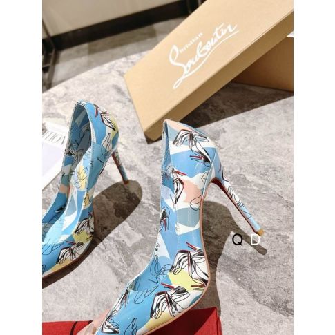 CL Kate Pumps 100mm Graphic Printed Patent Leather Blue