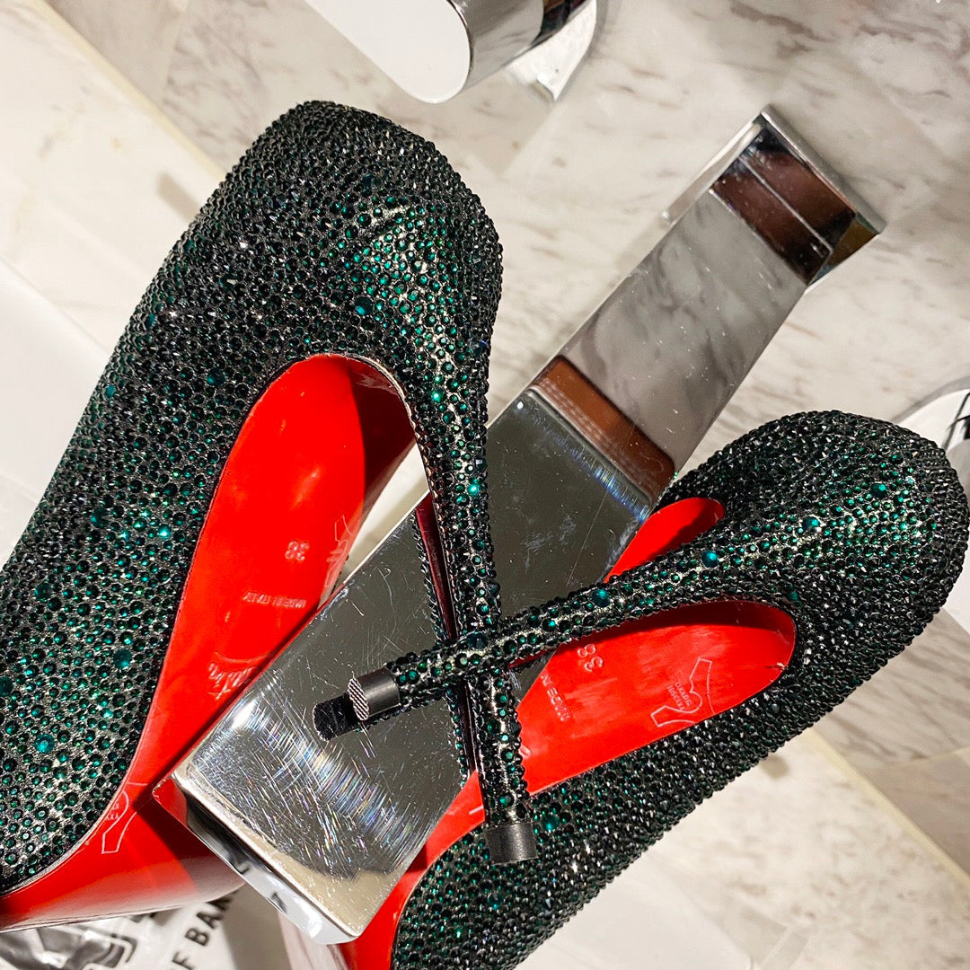 CL Kate Strass Degrade Pumps 100mm Suede Green