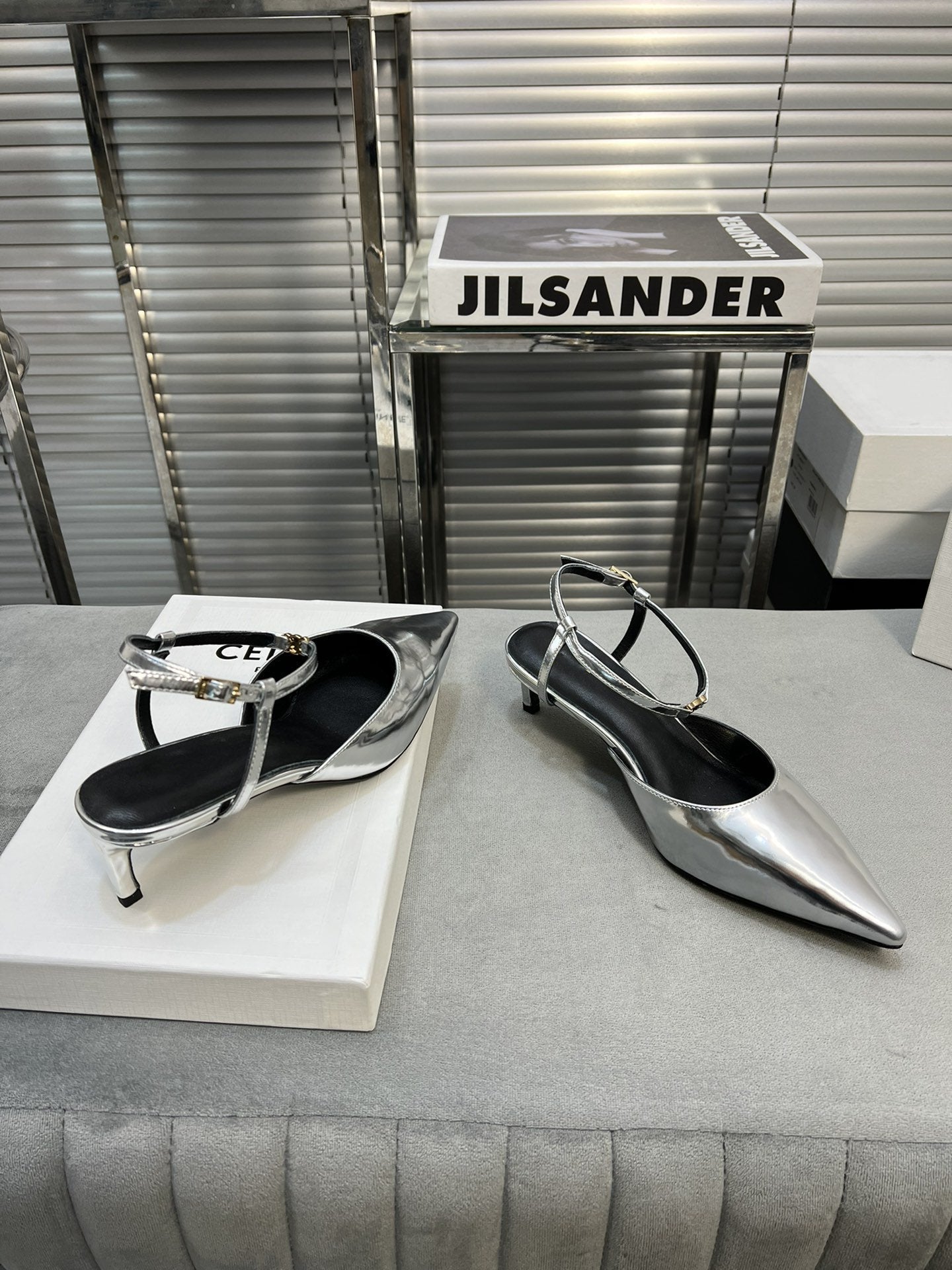 cl kitten 50 silver metalic calfskin