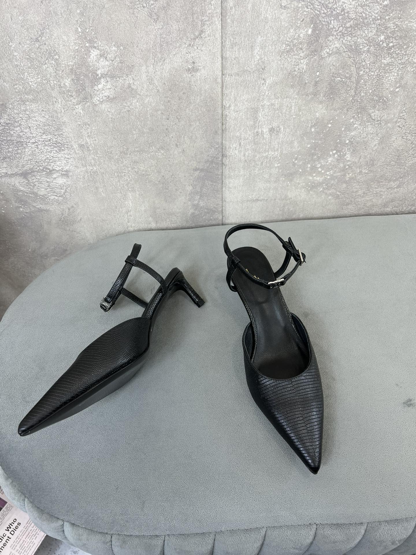 cl kitten with strap 45 black lizard stamped calfskin