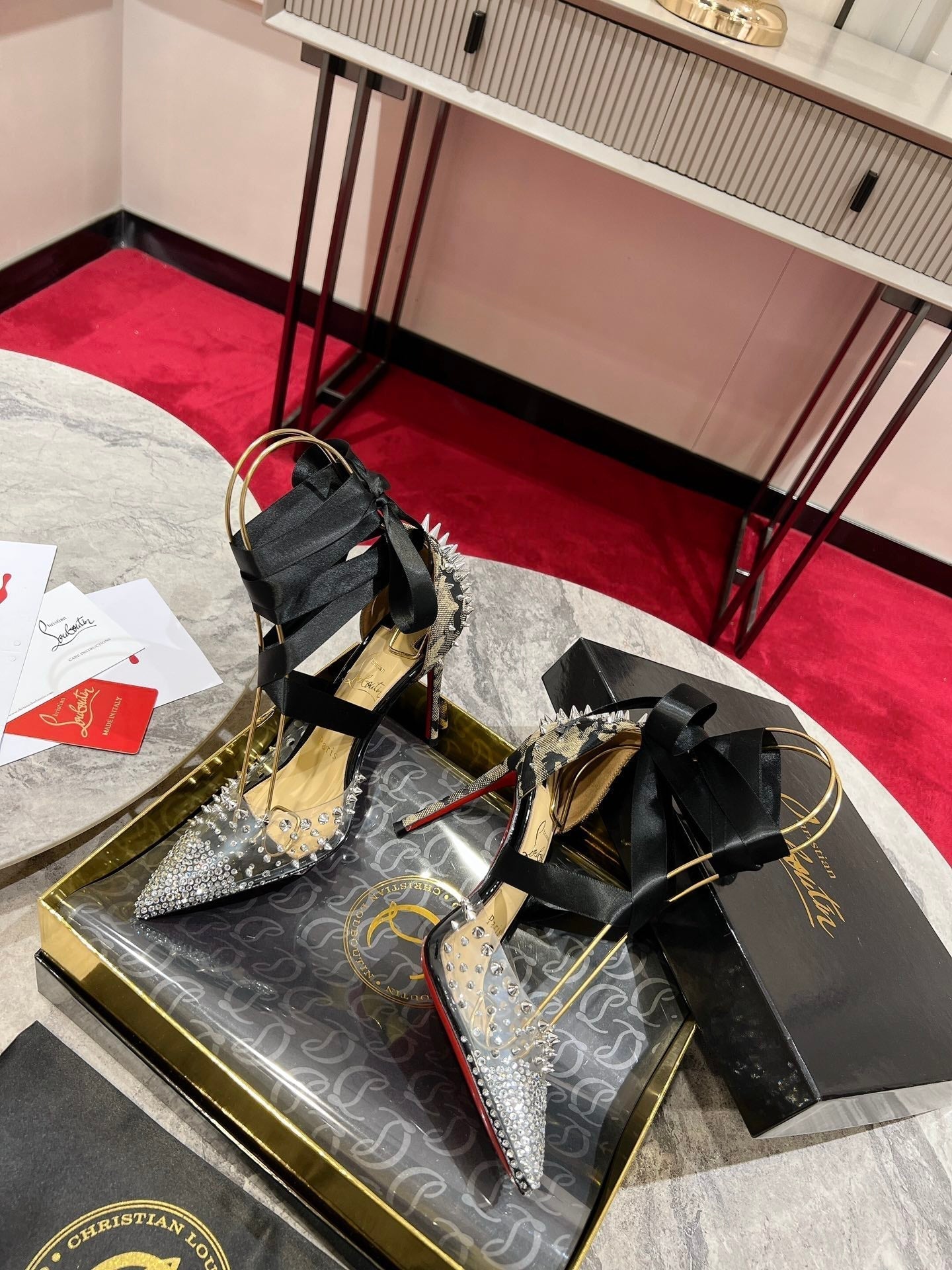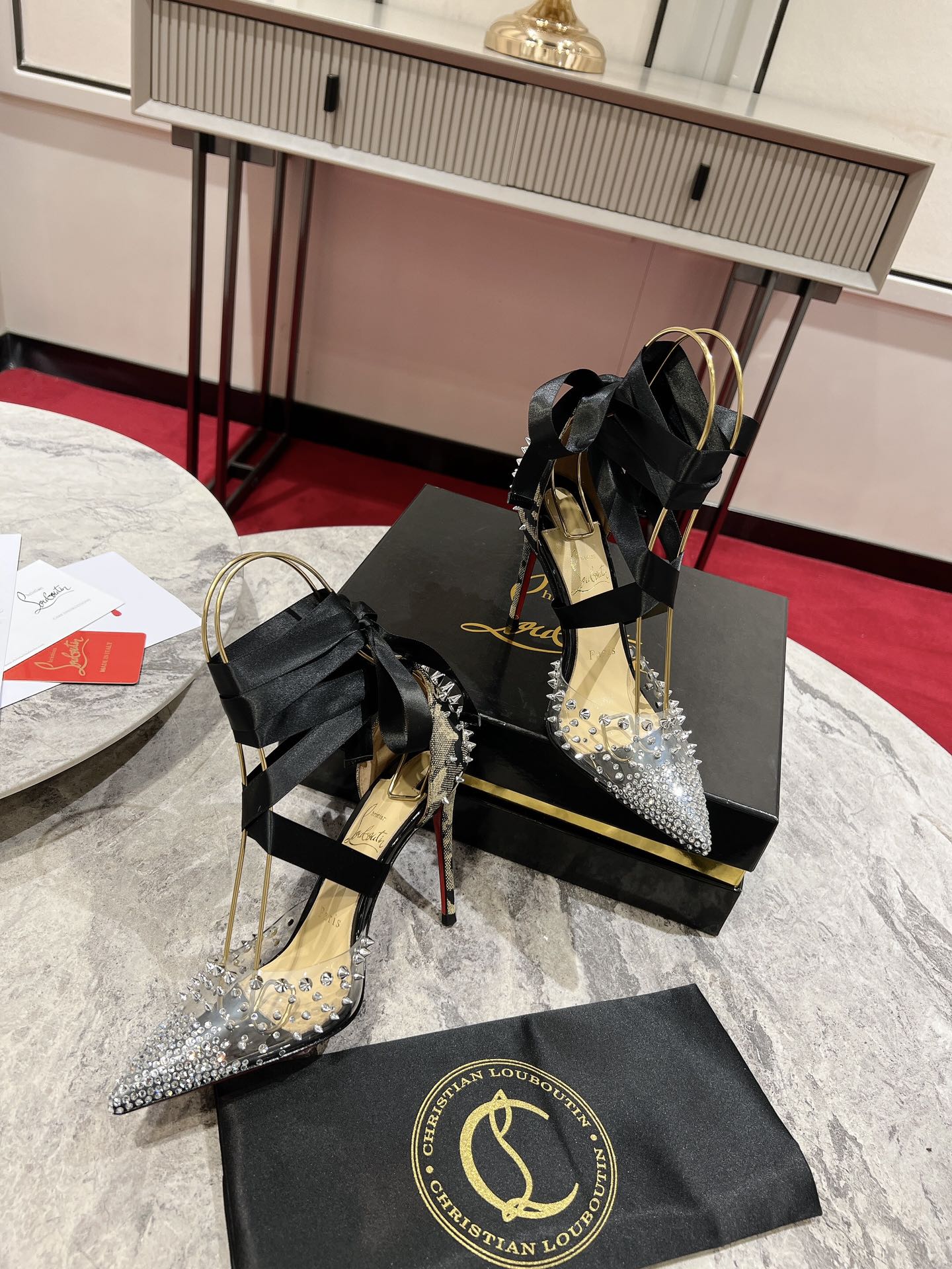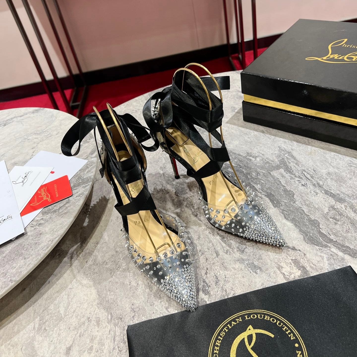 CL Mechante Reine Pumps 100mm Spike Fabric PVC Black