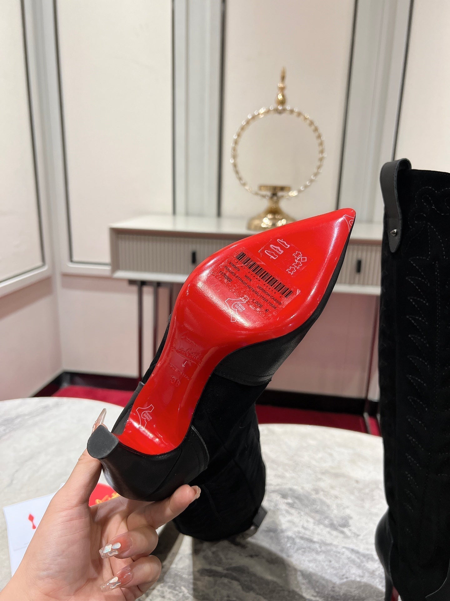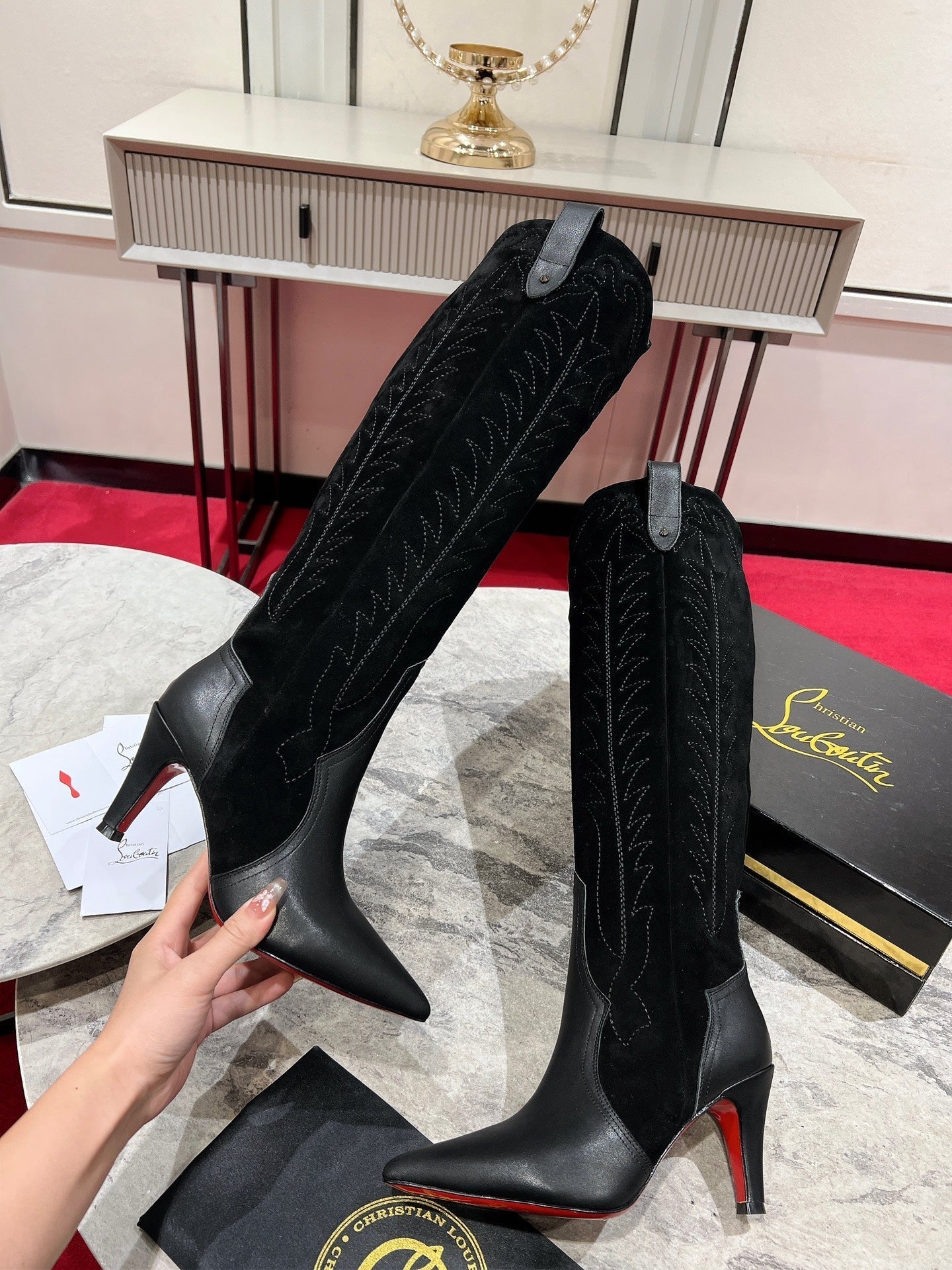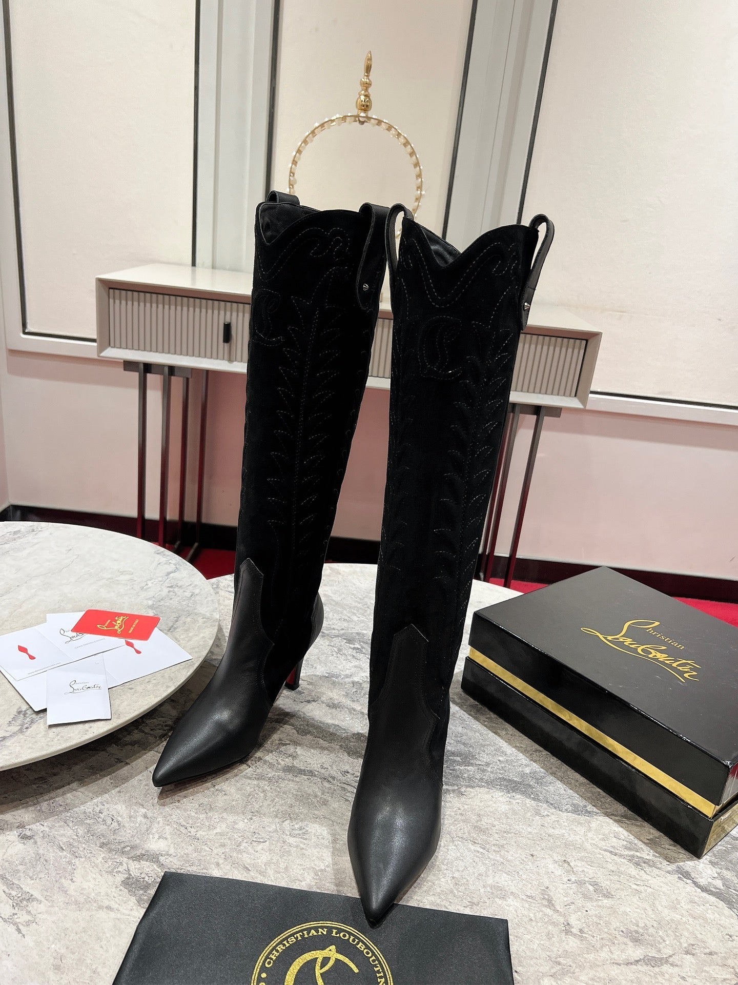 CL Santia Botta 85 mm Leather And Veau Velours Embroidery Black