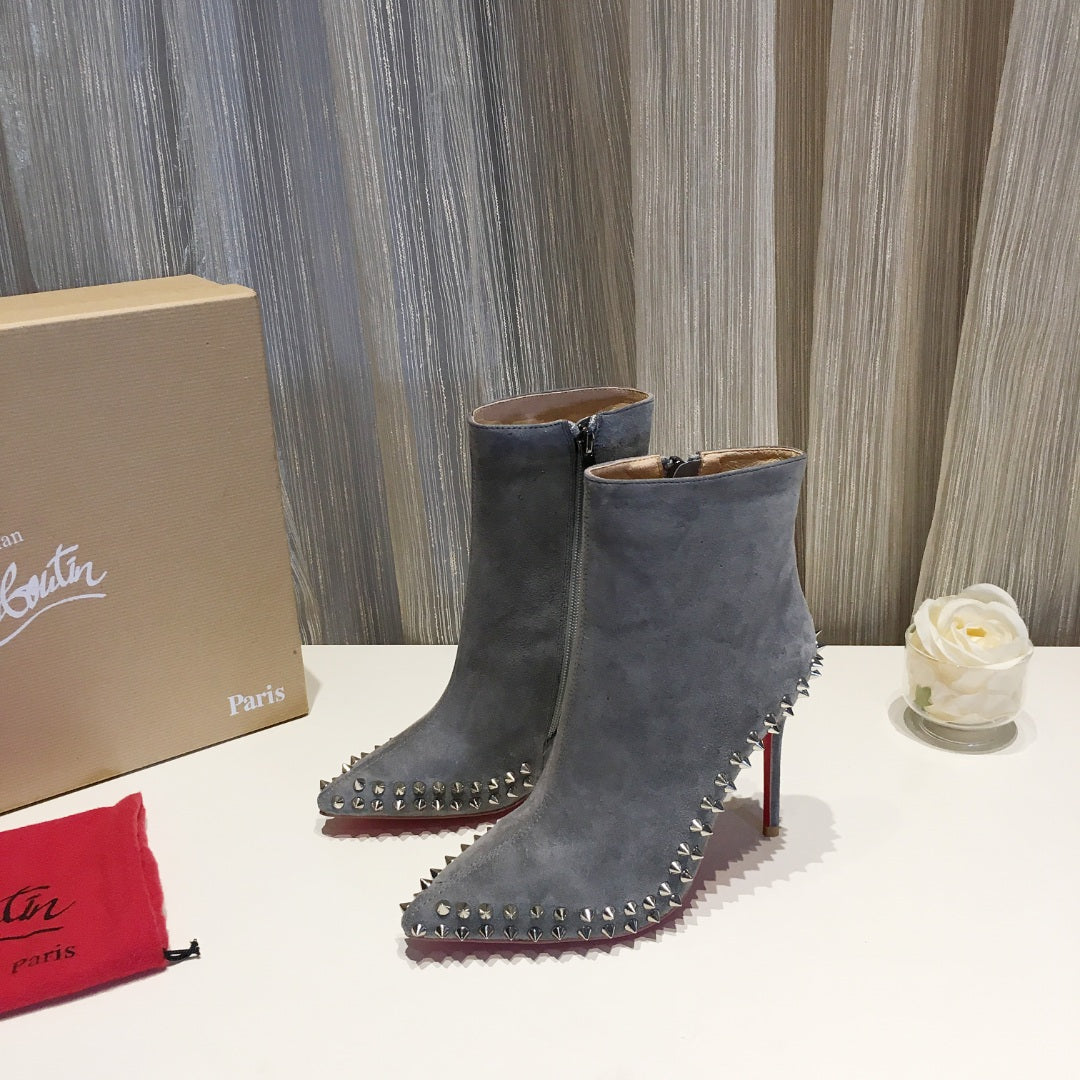 CL Willetta Ankle Boots 100mm Suede with Spikes Gray