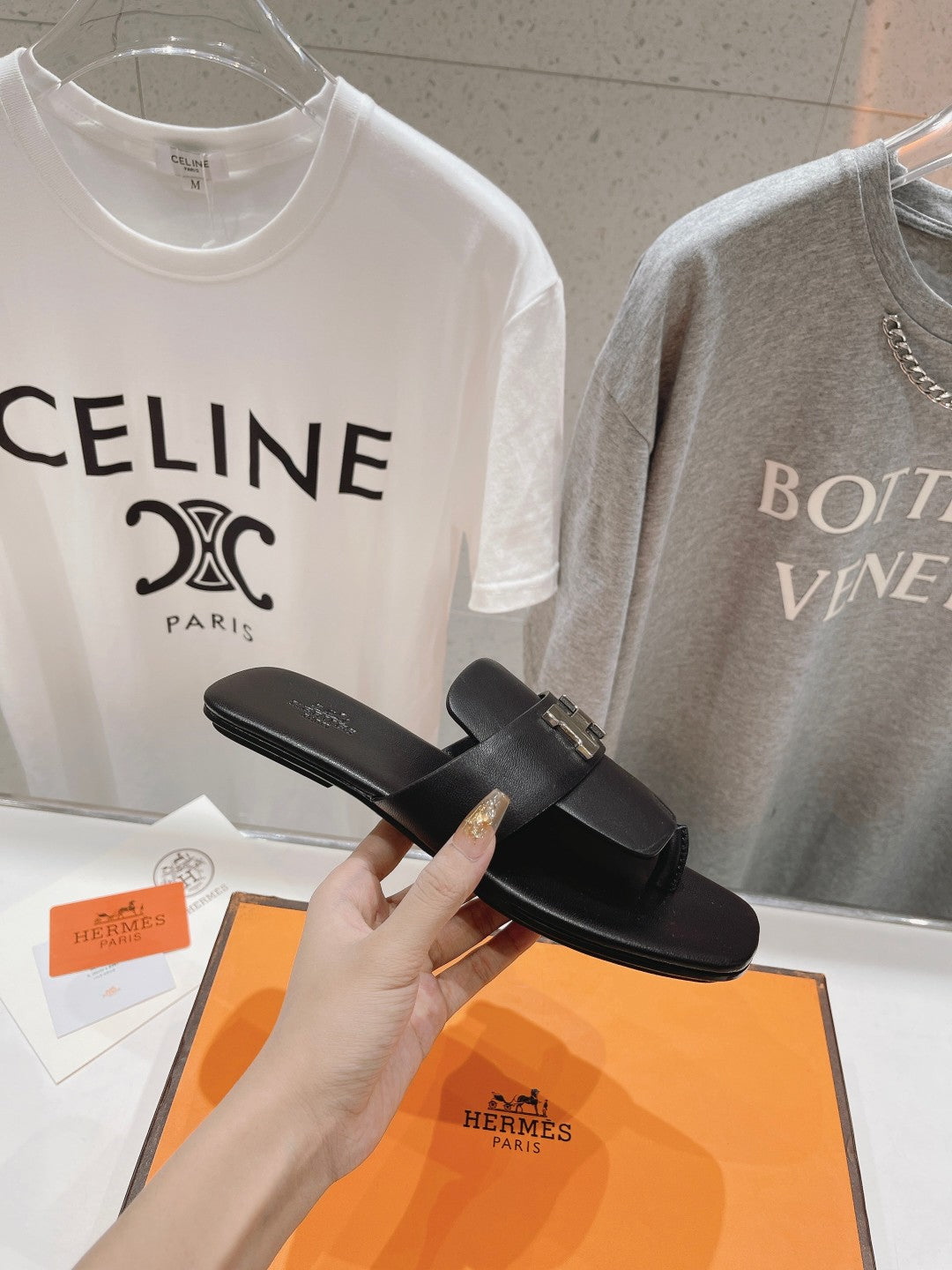 CLASSIC H BUCKLE SANDALS BLACK LAMBSKIN