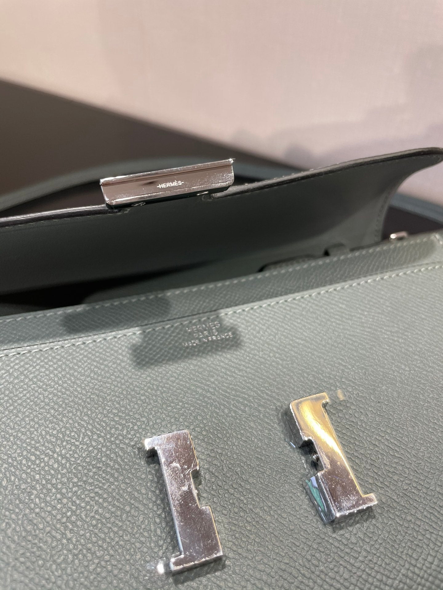 CONSTANCE TO GO 20.5 ALMOND GREEN EPSOM SILVER HARDWARE