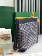 CONTI POUCH 24 IN NAVY BLUE LAMBSKIN AND GOYARDINE CANVAS