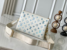 COUSSIN PM 26 IN WHITE BLUE MONOGRAM EMBOSSED LAMBSKIN GOLD HARDWARE