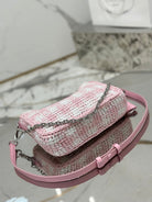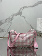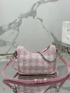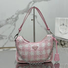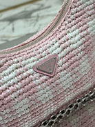 CROCHET HOBO BAG 22 IN PINK MIX WHITE RAFFIA SILVER HARDWARE