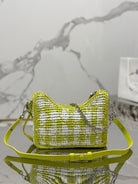 CROCHET HOBO BAG 22 IN VOLT GREEN MIX WHITE RAFFIA SILVER HARDWARE