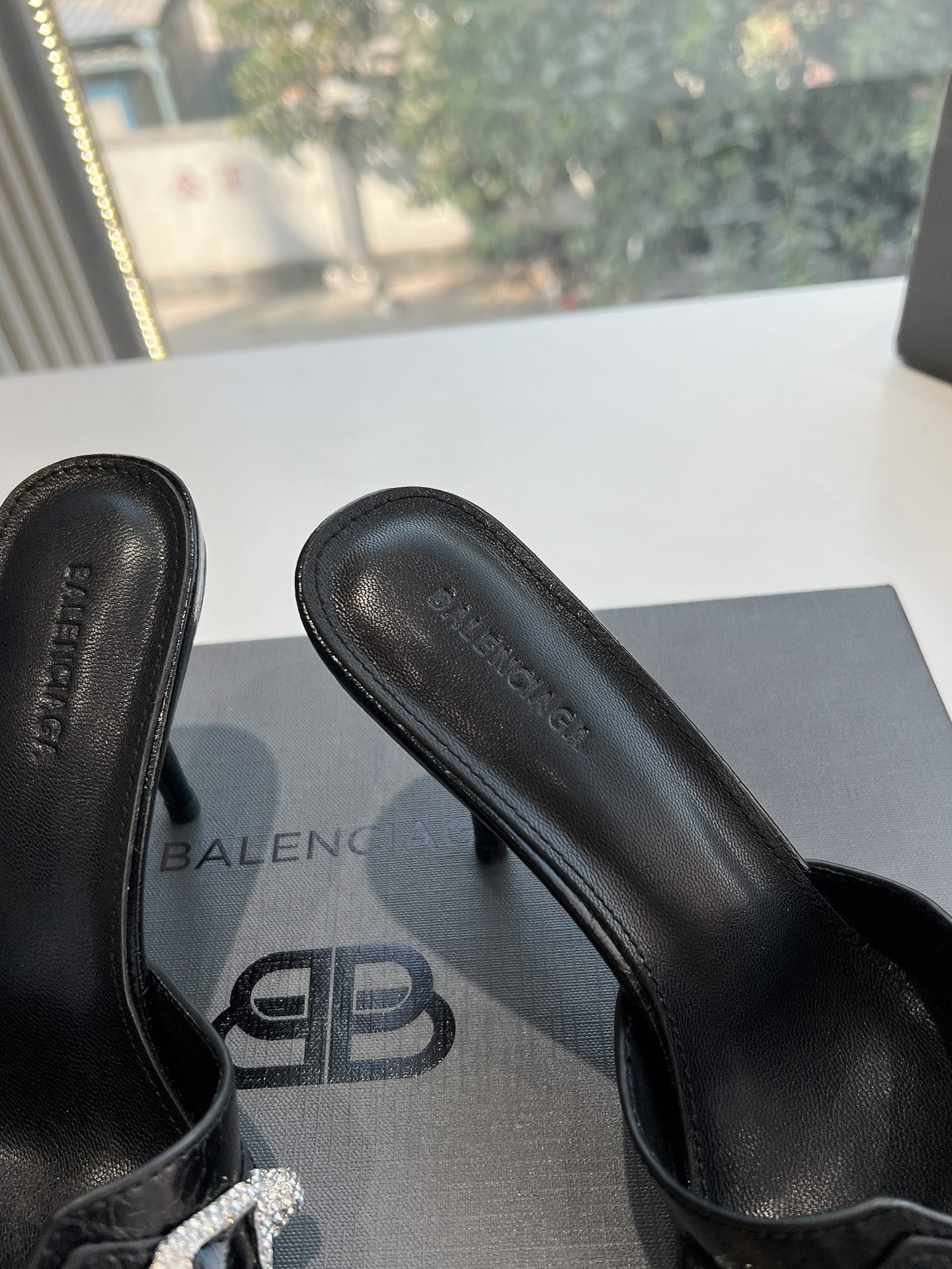 CRYSTAL BUCKLE BLACK WAX-OIL SHEEPSKIN HEELED MULES