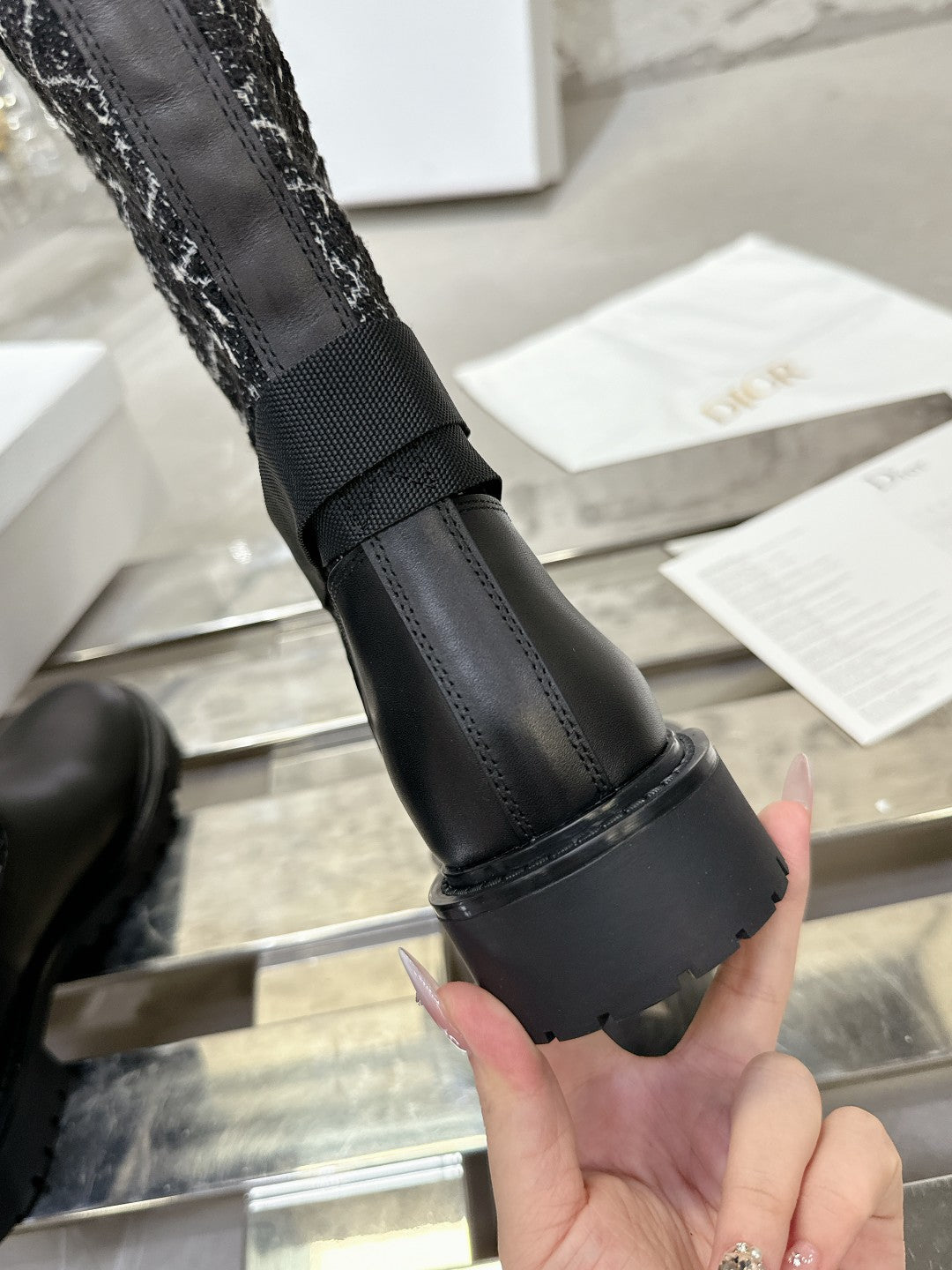 D-Major Boot In Black Mix White Denim Fabric 100564