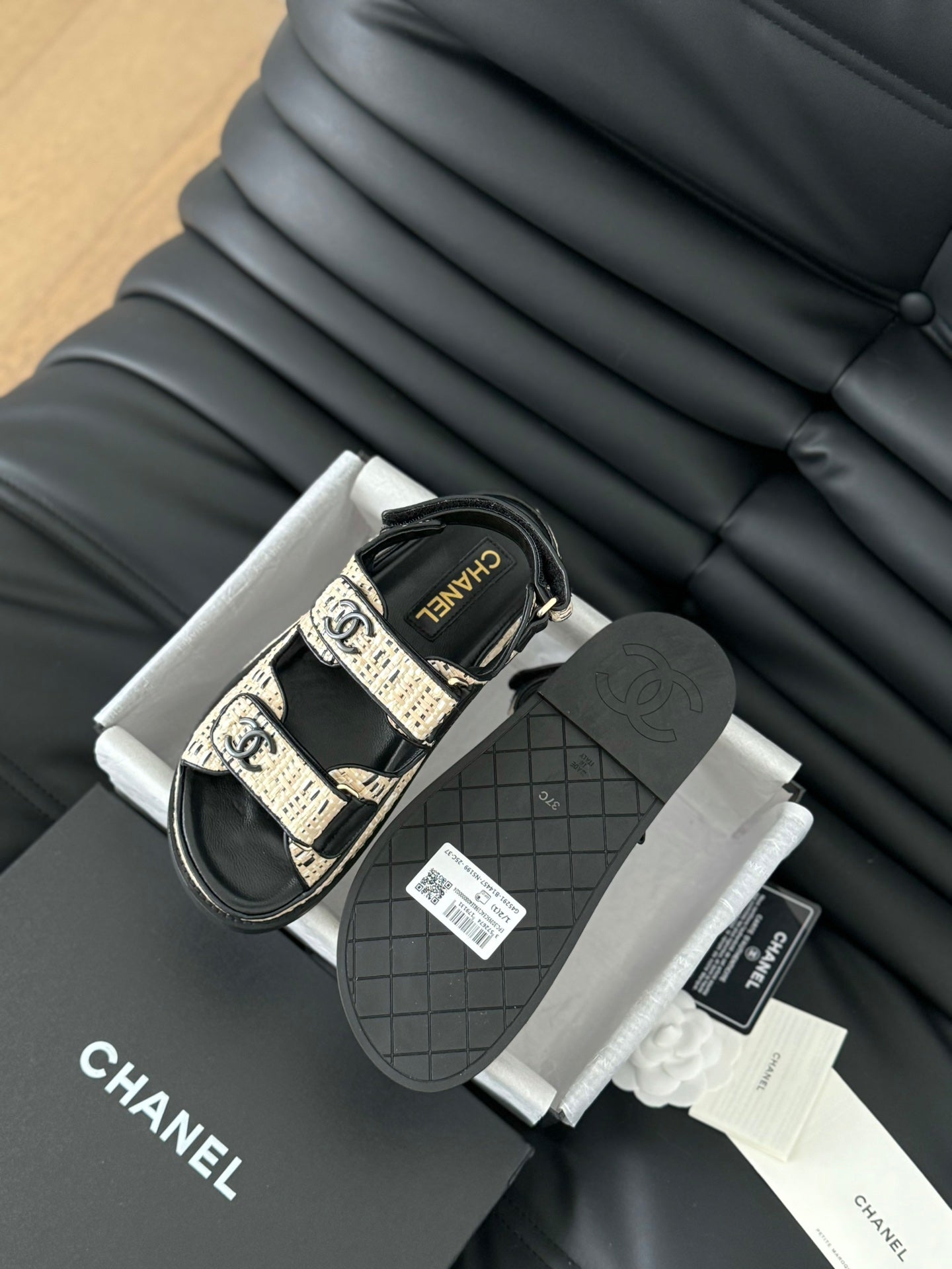 Dad Sandals Sheepskin Beige Black