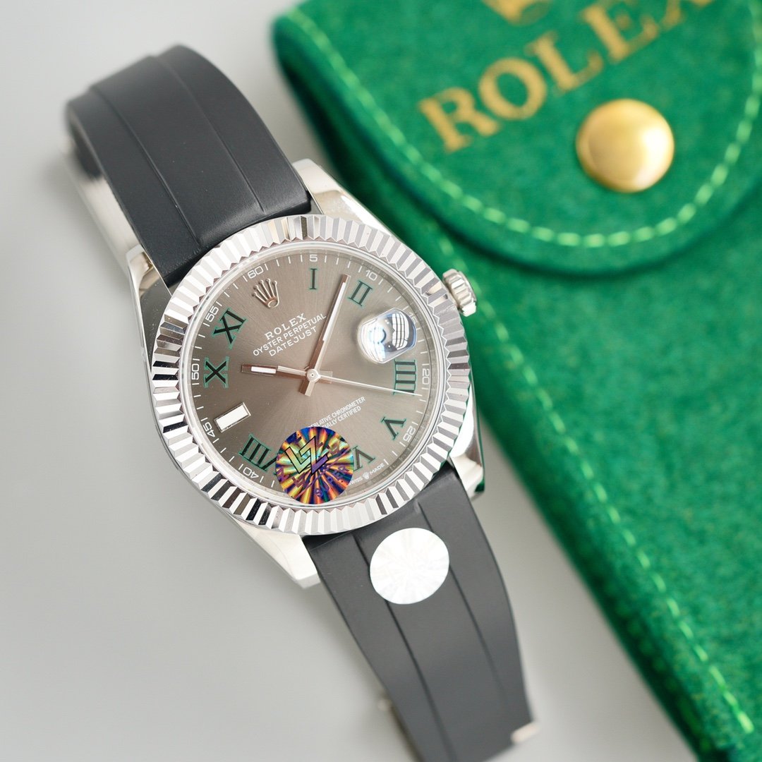 DATEJUST II 41MM STAINLESS STEEL CASE WIMBLEDON DIAL RUBBER STRAP