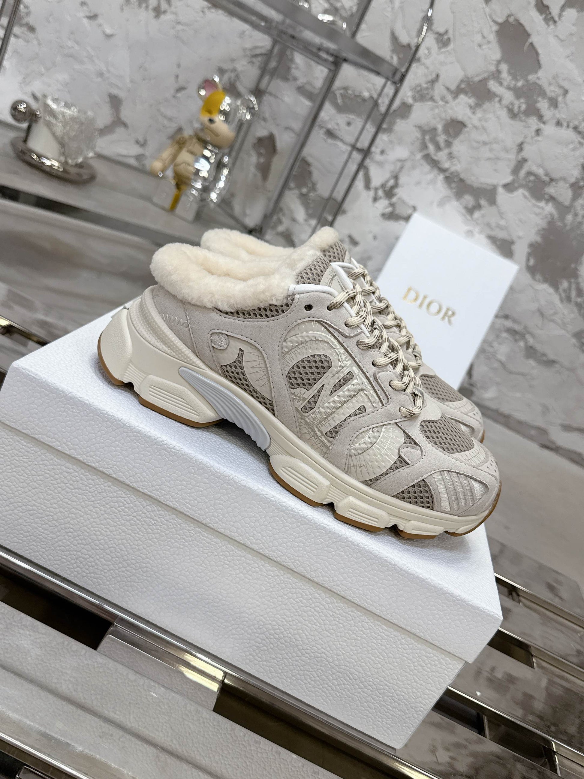 Dior 25 Chrono Sneakers Light Beige mix White Mesh Calfskin 530321