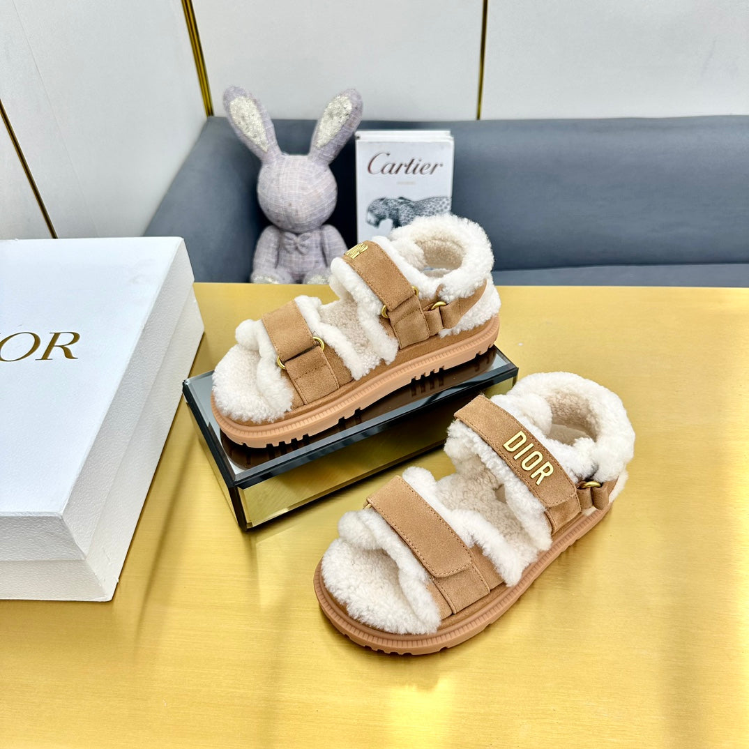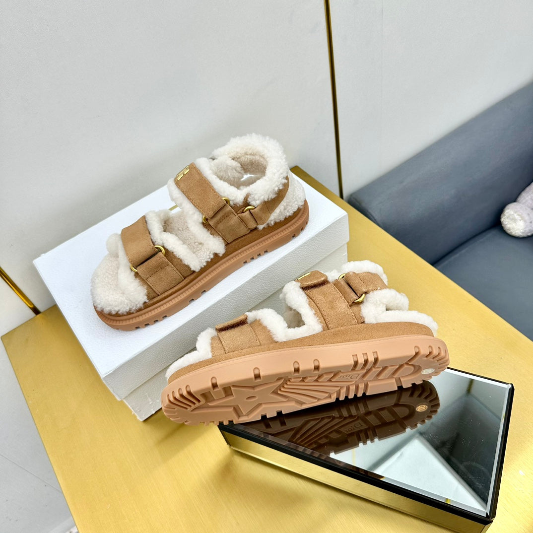 Dioract Sandal In Brown Suede And Wool Fleece Lining 111048