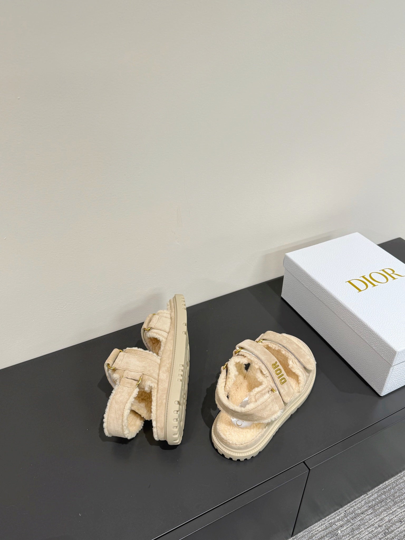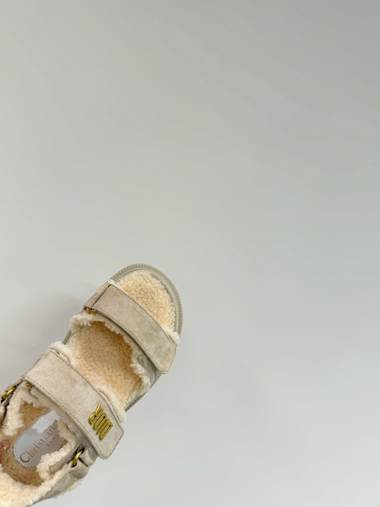 Dioract Sandal In Light Grey Suede And Wool Fleece Lining 109873