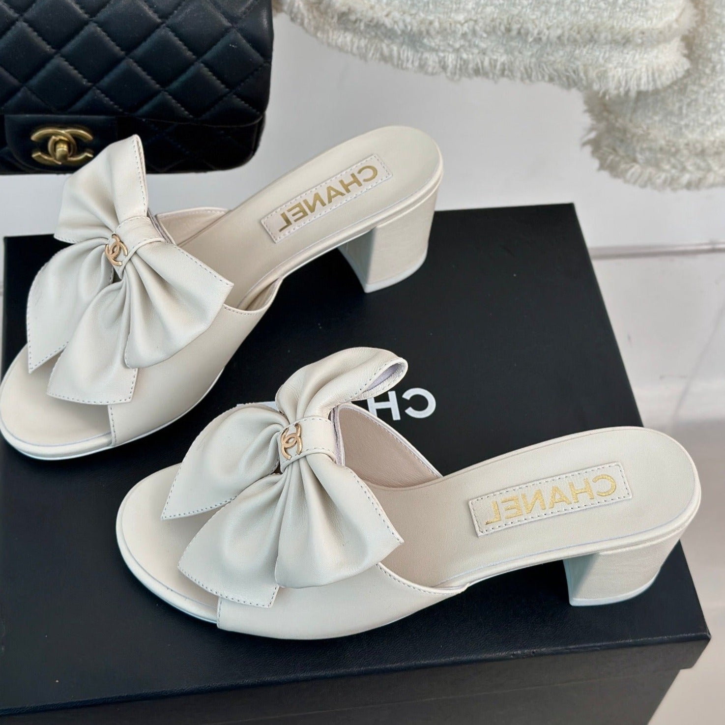cc big bow sandal 60 white lambskin