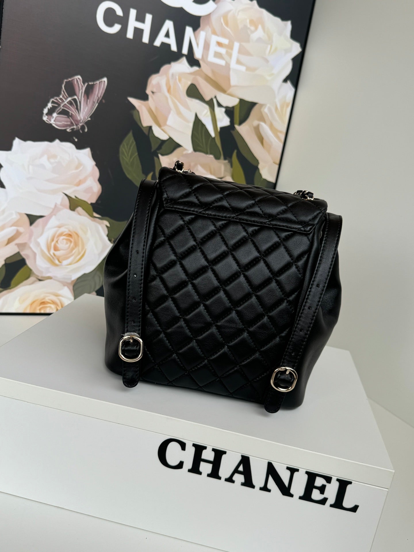 duma backpack 22cm black lambskin light gold hardware