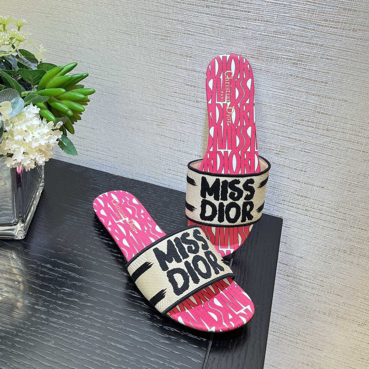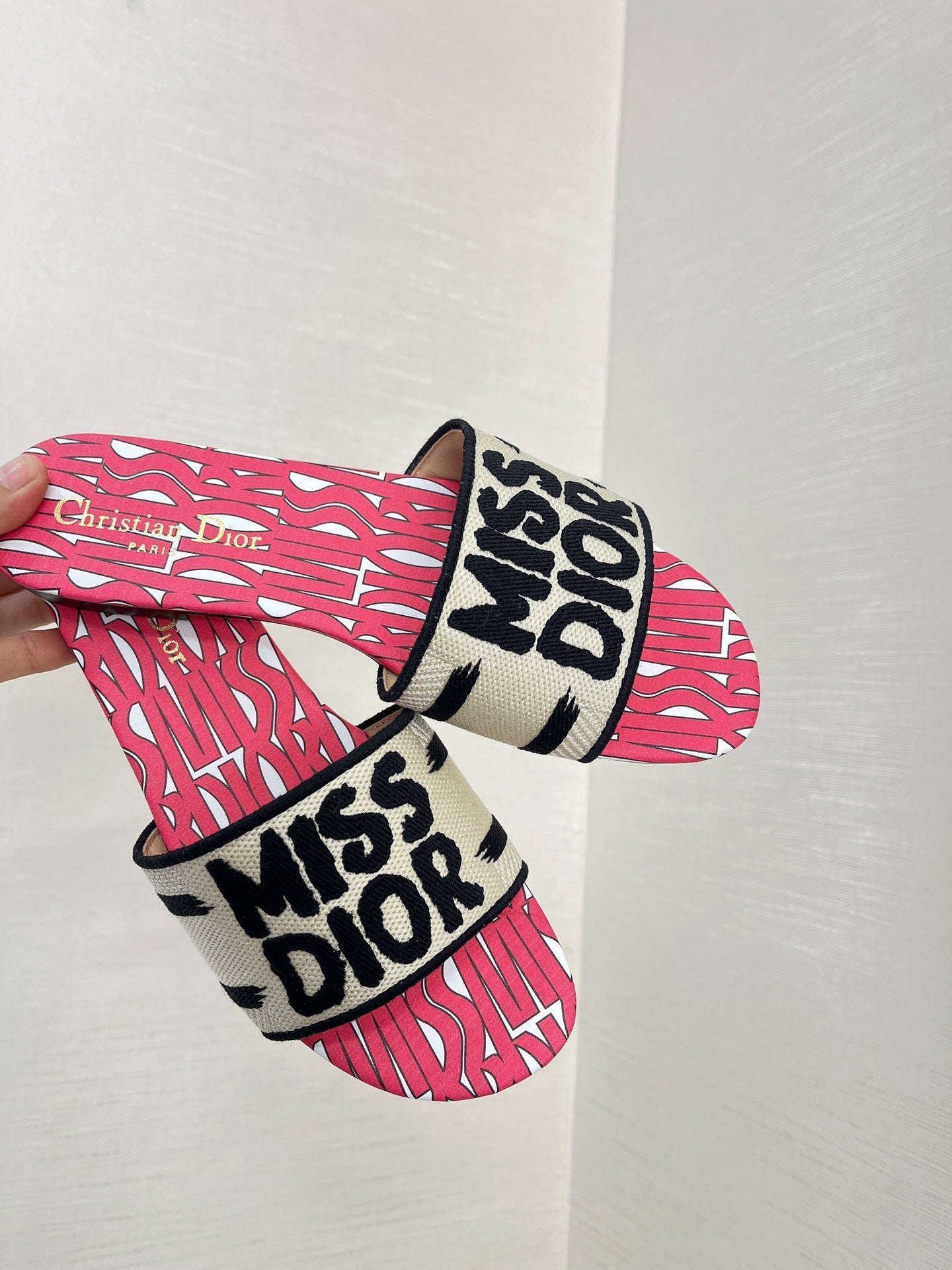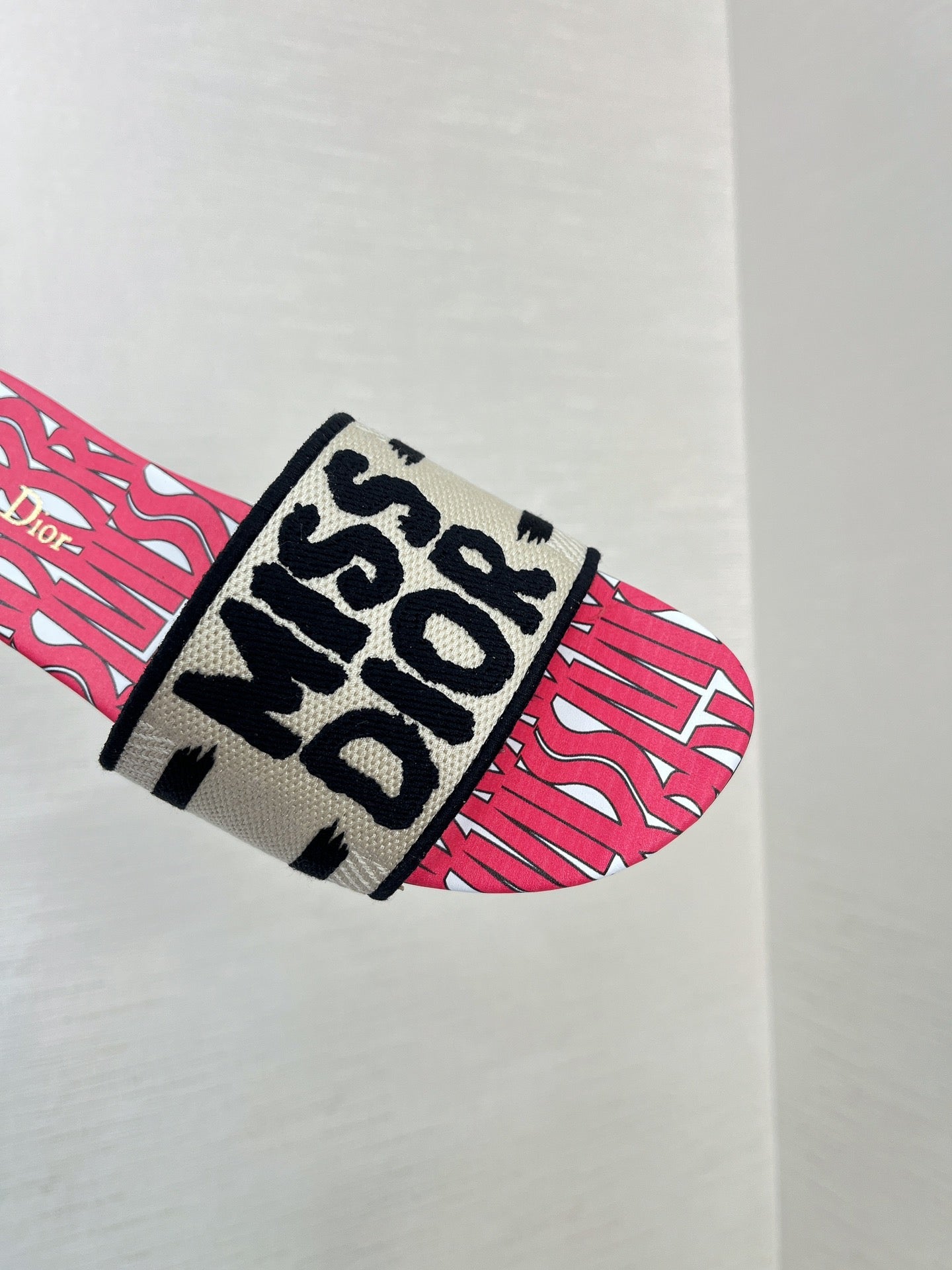 dway slide embroidered cotton red miss cd alllover motif