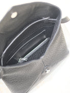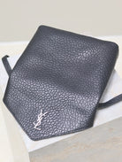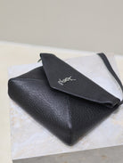 ENVELOPE CHAIN BAG 23 IN BLACK ELEPHANT TEXTURE LAMBSKIN SILVER LOGO