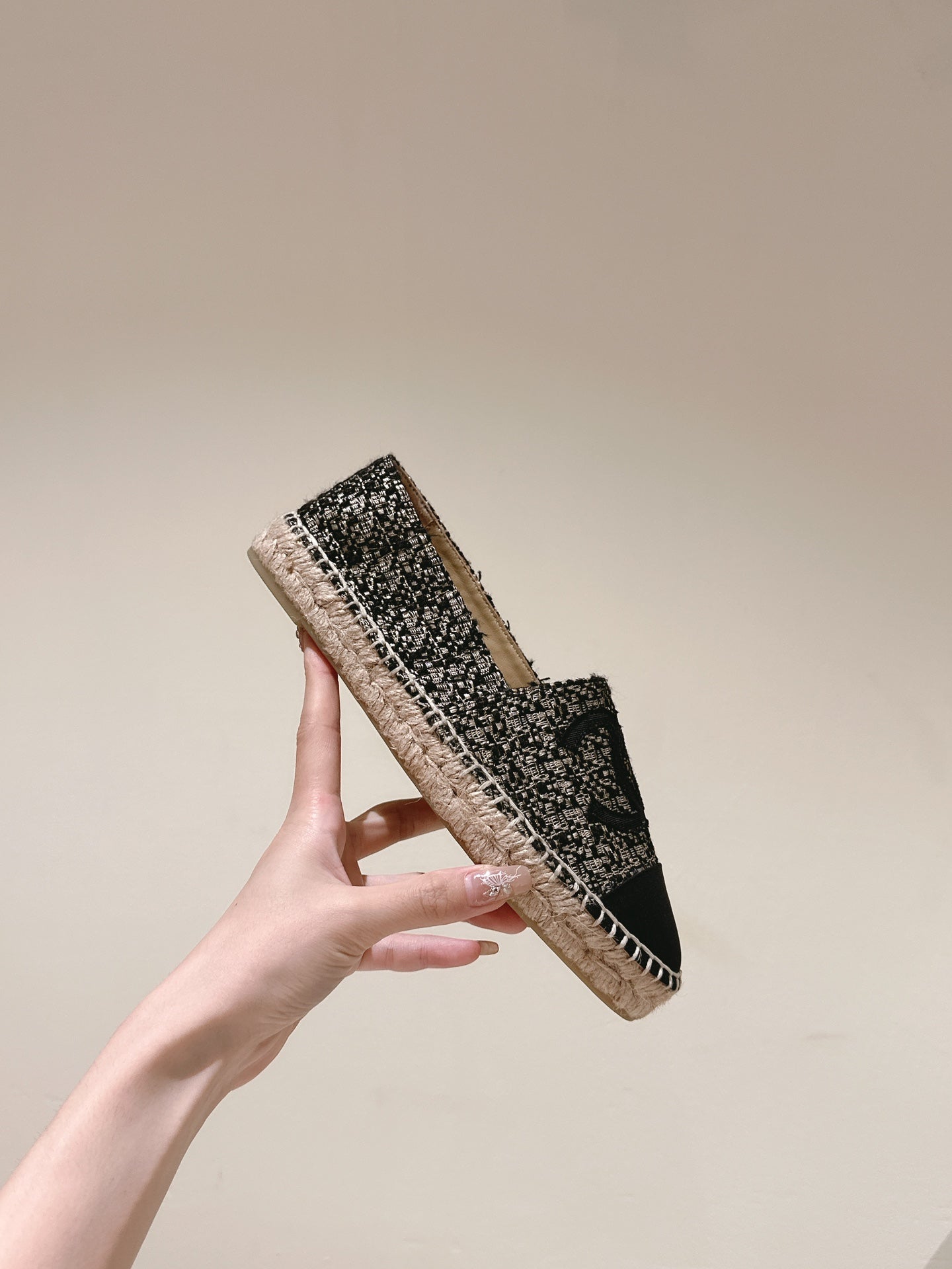espadrilles black silver tweed black canvas