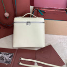 EXTRA POCKET BACKPACK L23.5 IN WHITE CALFSKIN WITH SILVER HARDWARE