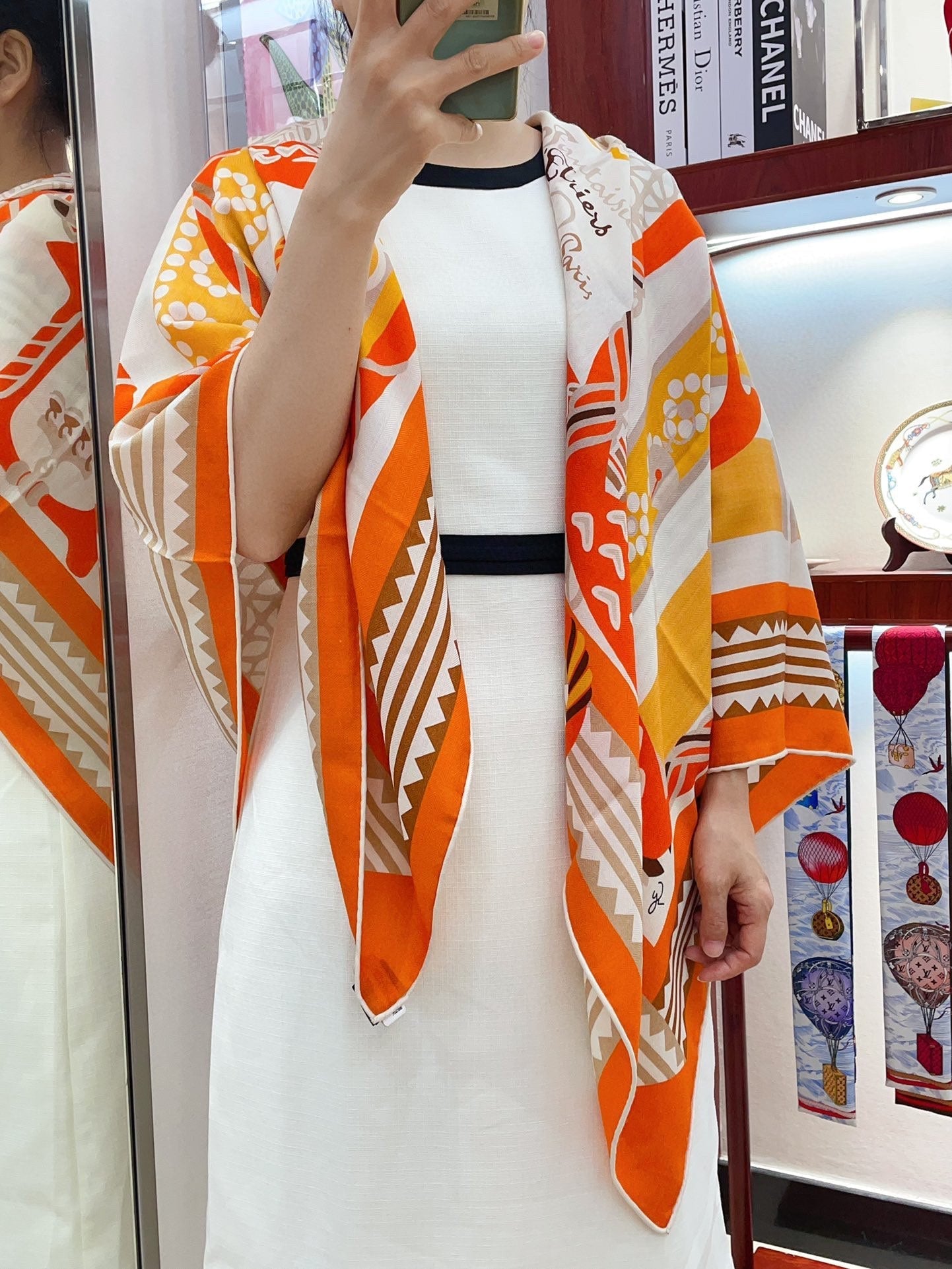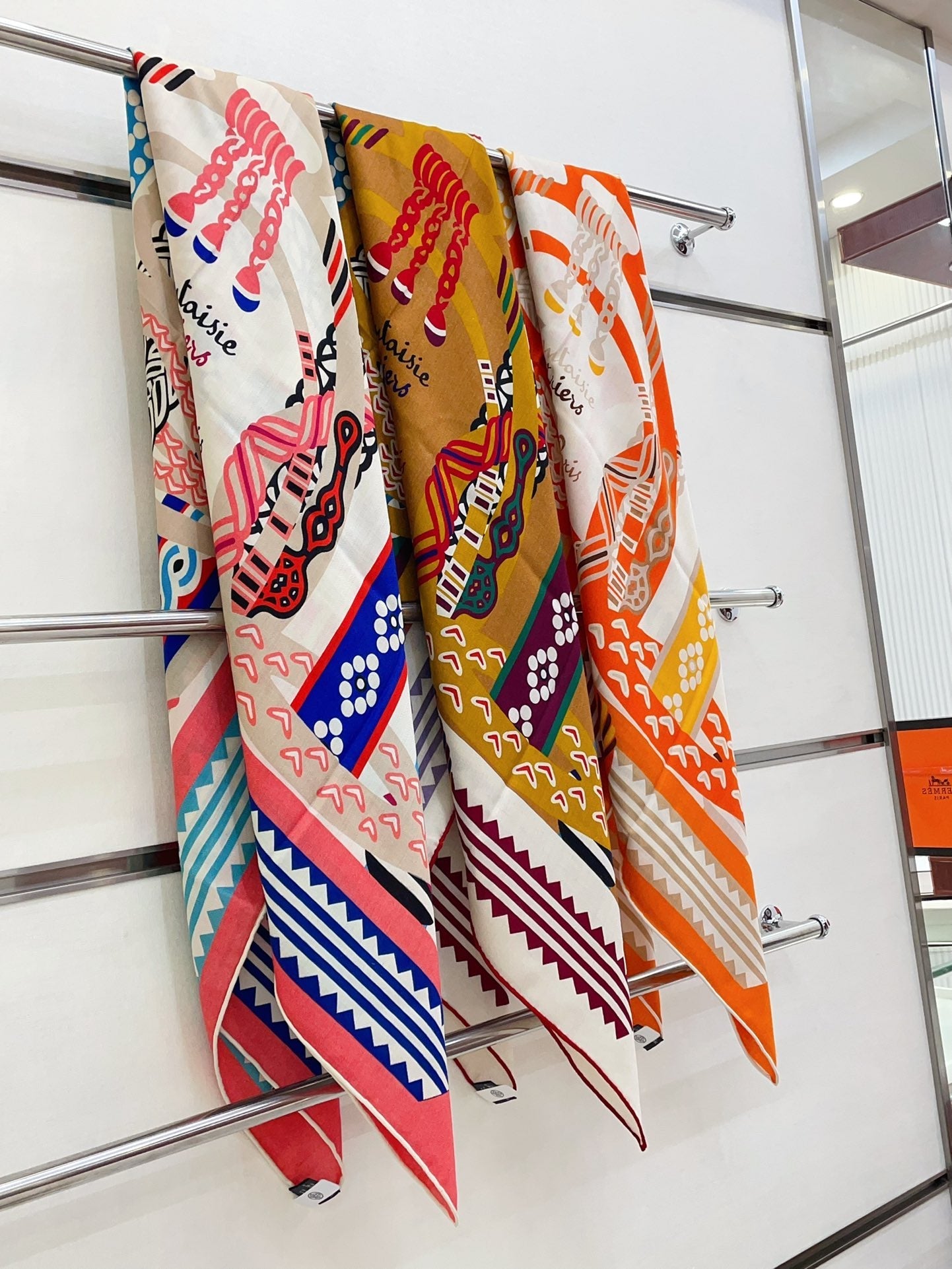 Fantaisie d'Etriers Shawl 135 CM Orange Colorful Cashmere And Silk 402081