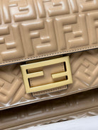 Fend Baguette 24 Bag With FF Motif Beige Leather Ghw