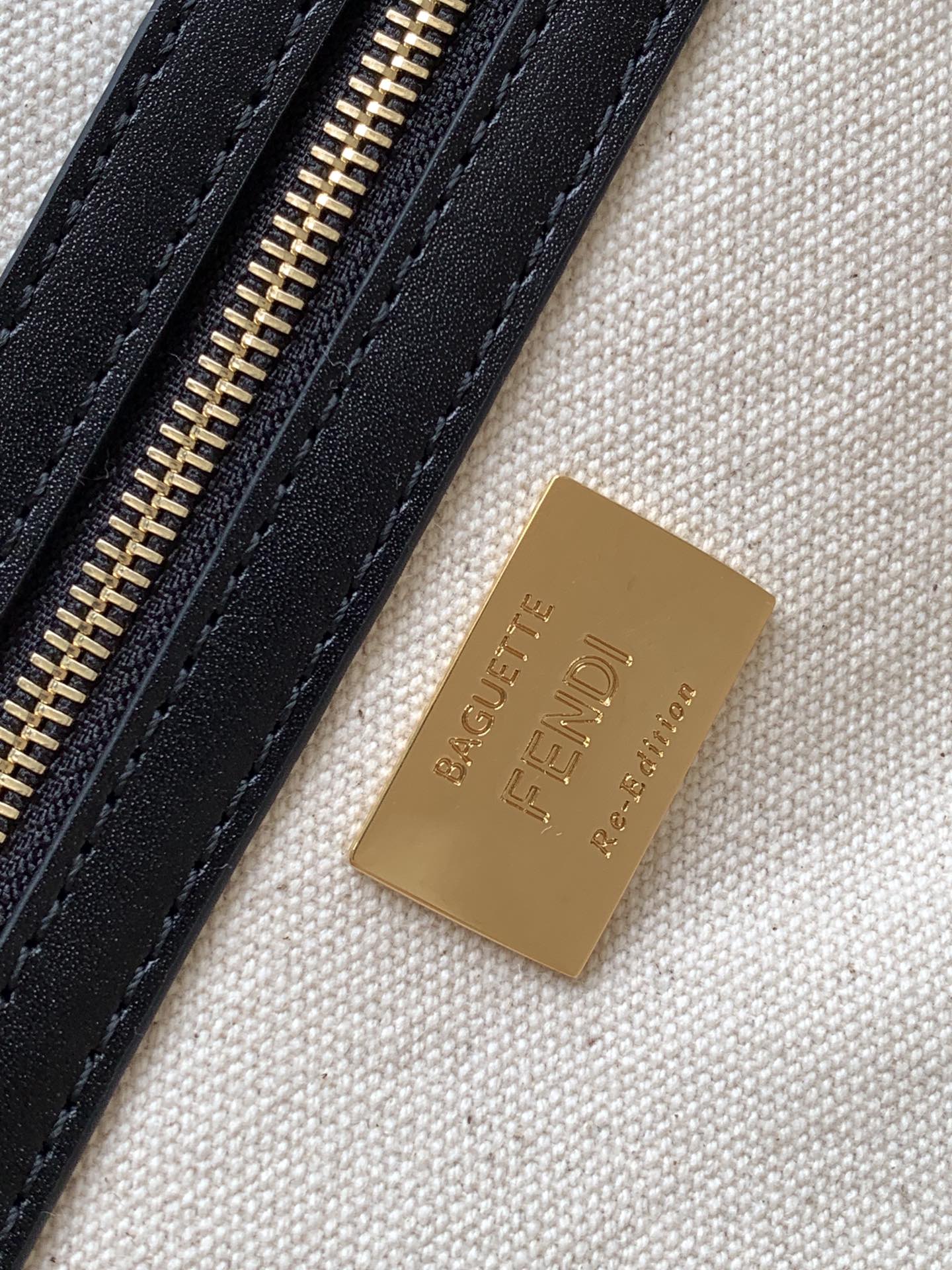 Fend Baguette Black and Multicolour Canvas Bag 27 with FF Embroidery Ghw