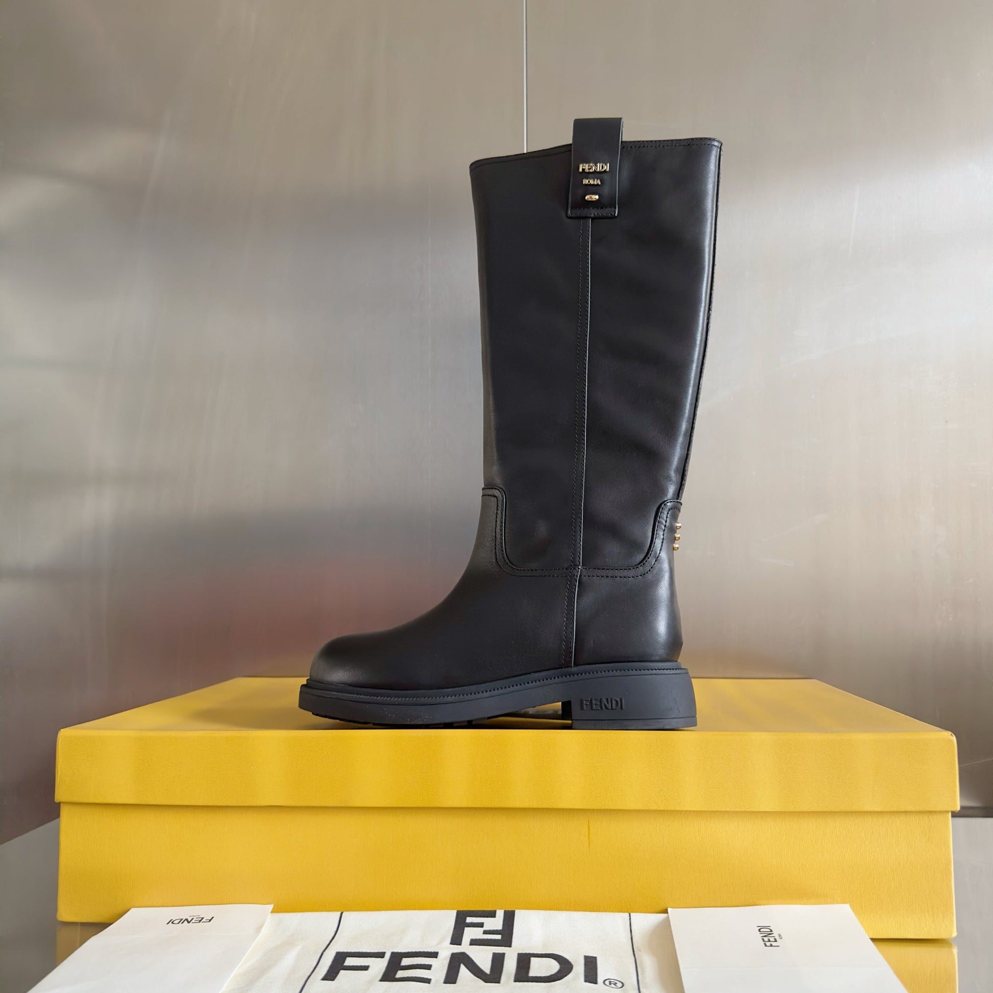 Fendi 2025 Long Boot Black Sheepskin 553109