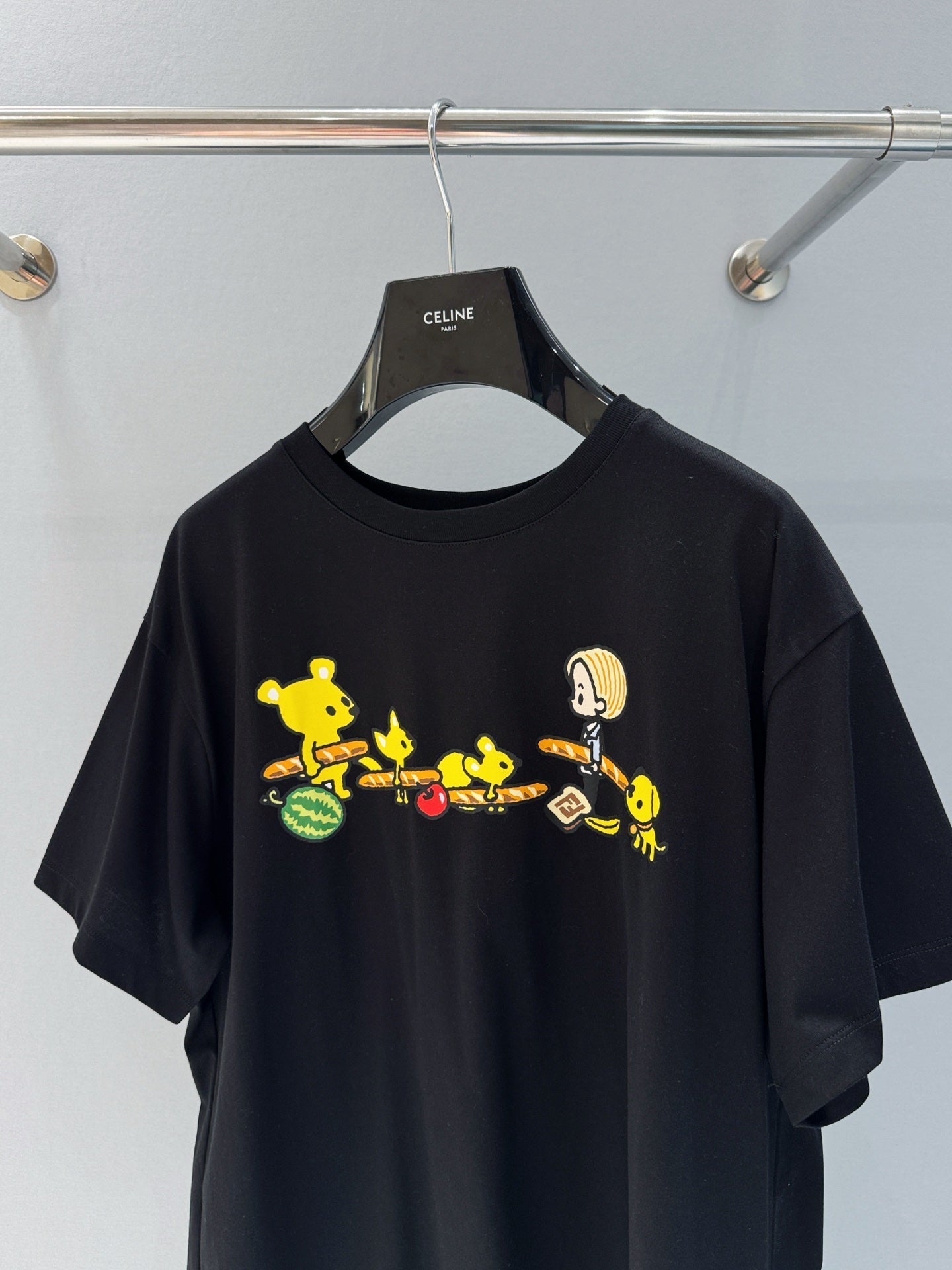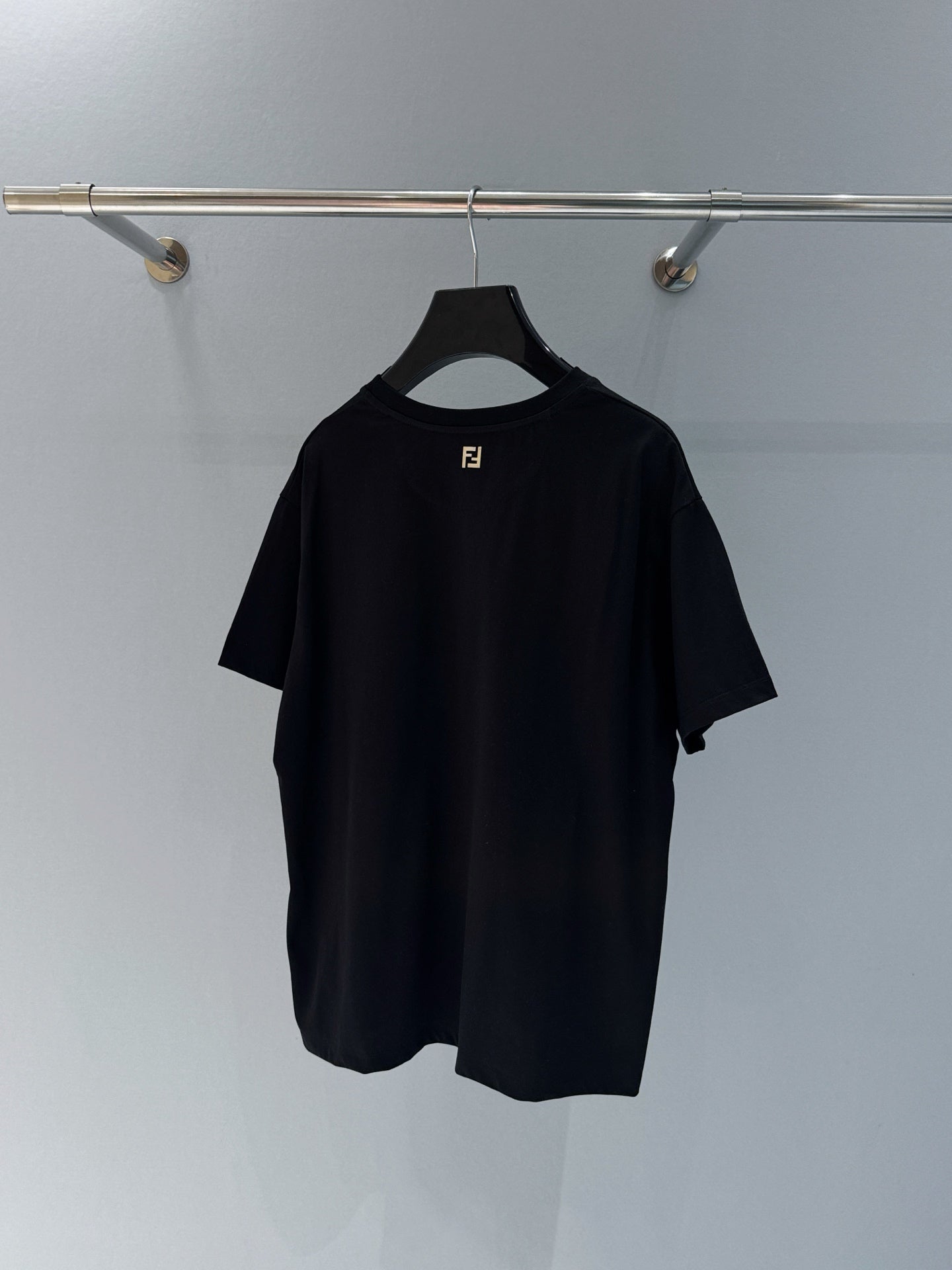Fendi 25 Baguette Print Round Neck Short Sleeves Black Cotton