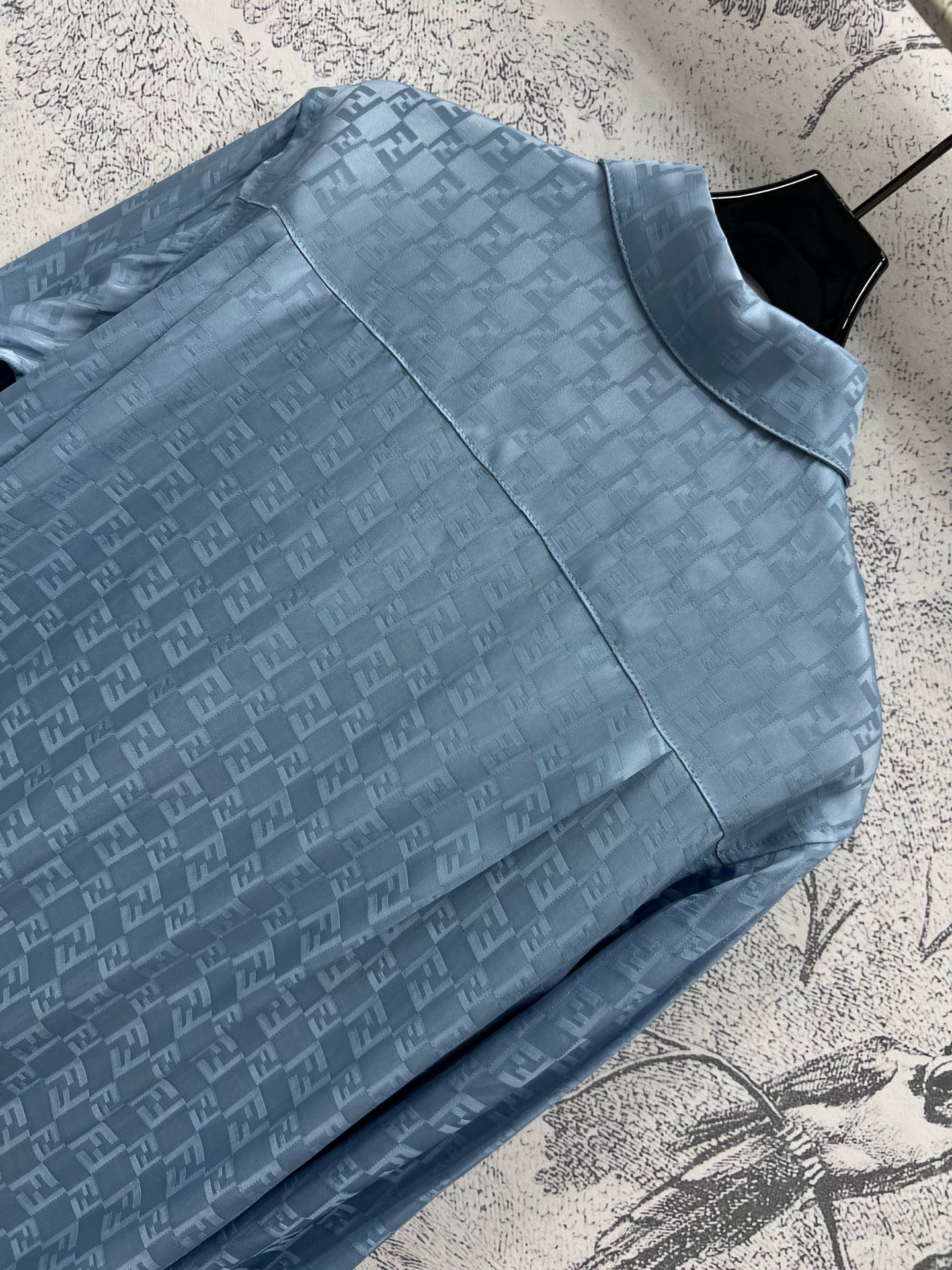Fendi 25 Double F Shirt Blue Viscose Polyester