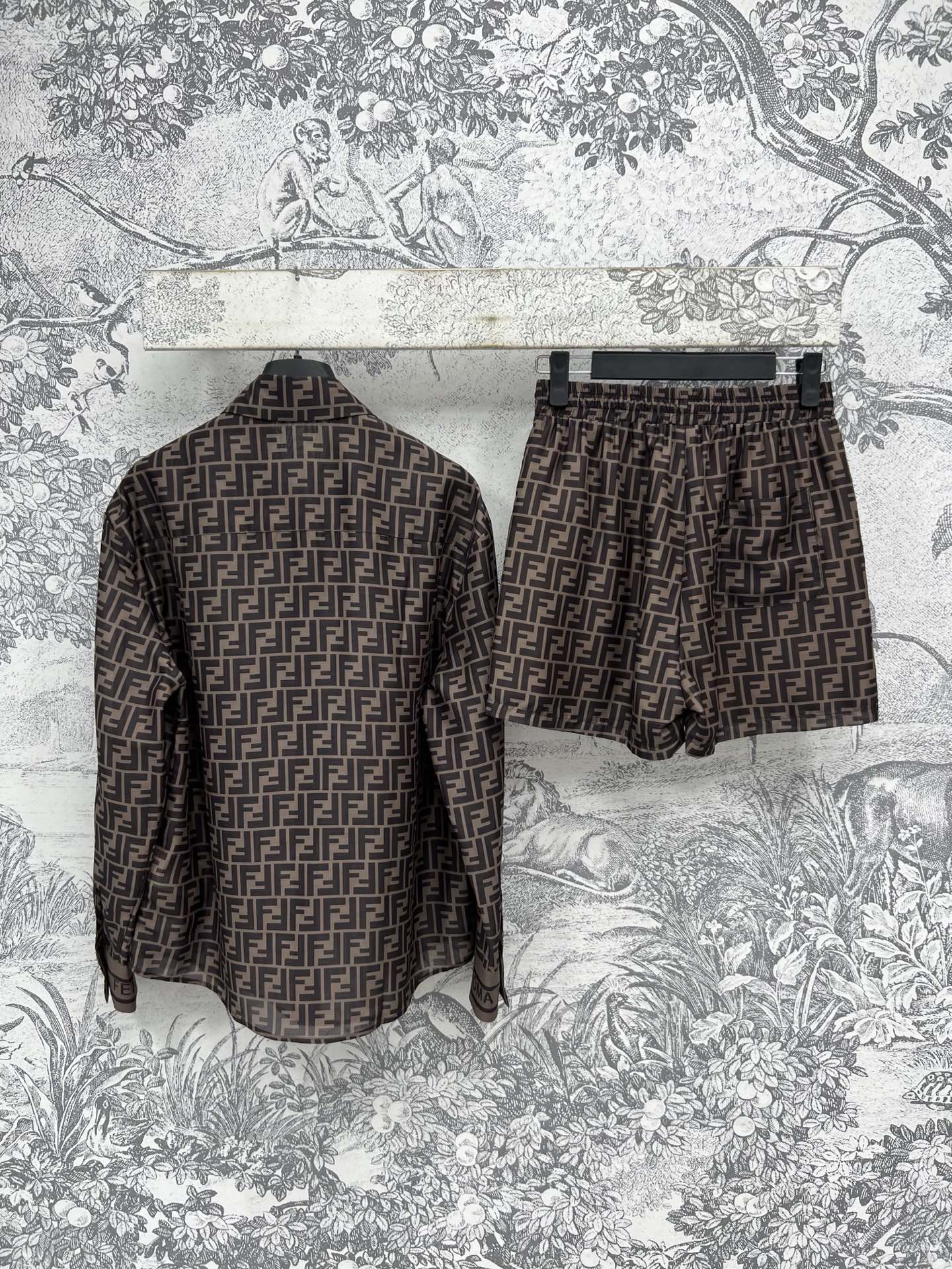 Fendi 25 double F shirt suit Black Brown Polyester fiber