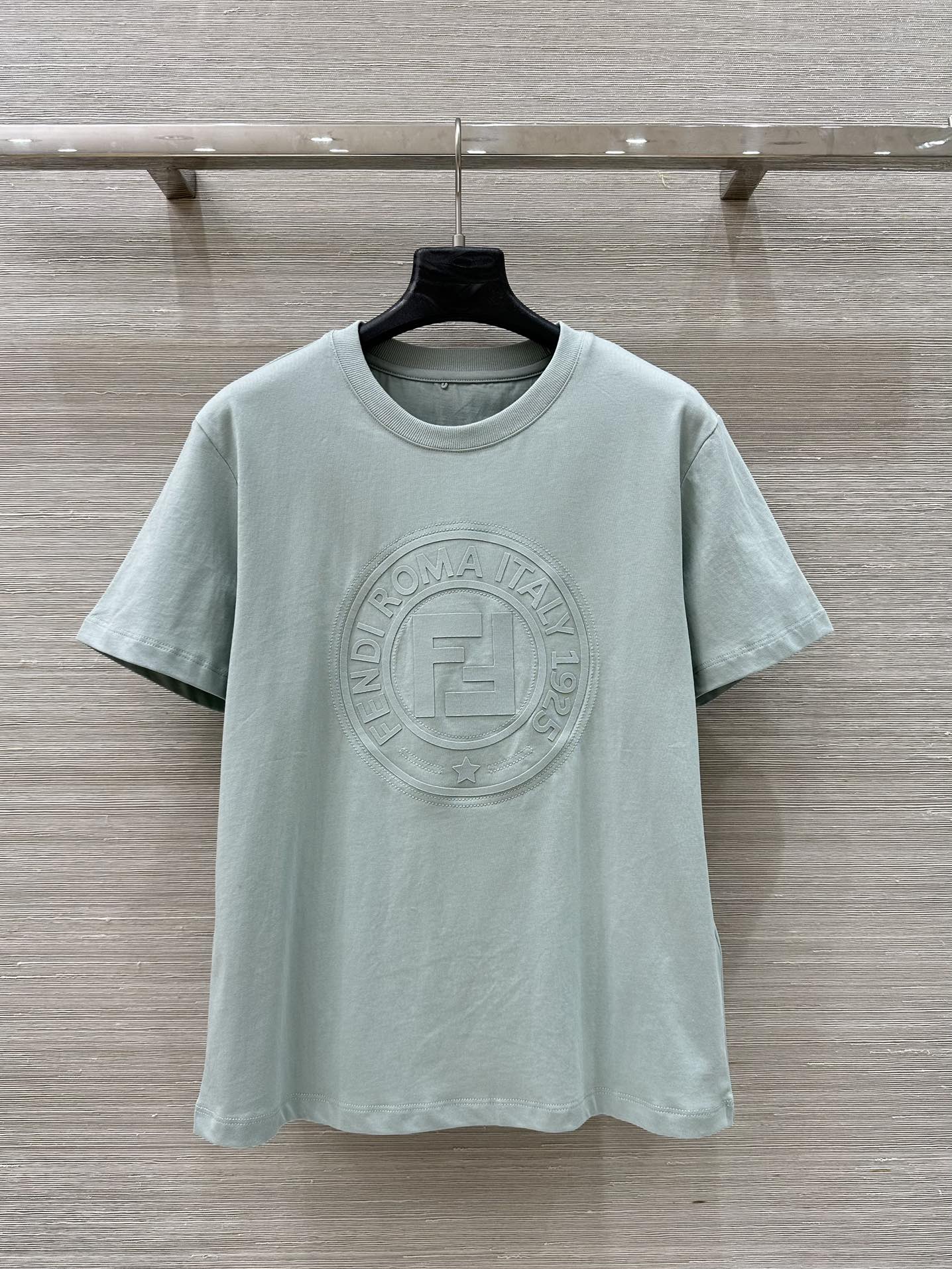 Fendi 25 Embossed Letter T-shirt Ice blue Cotton