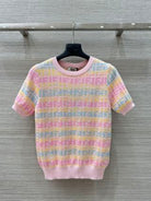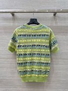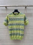 Fendi 25 Knitted Short-sleeved Top Green Pink Wool Cotton